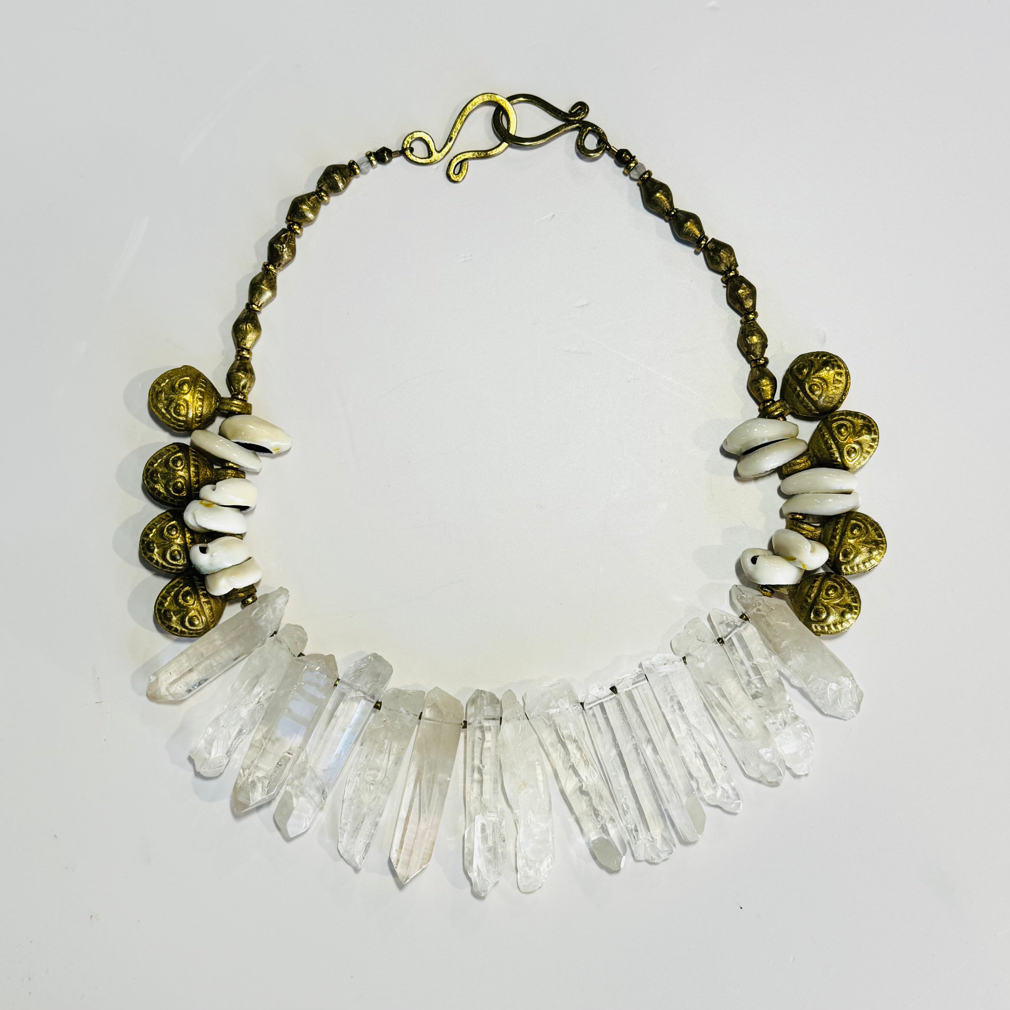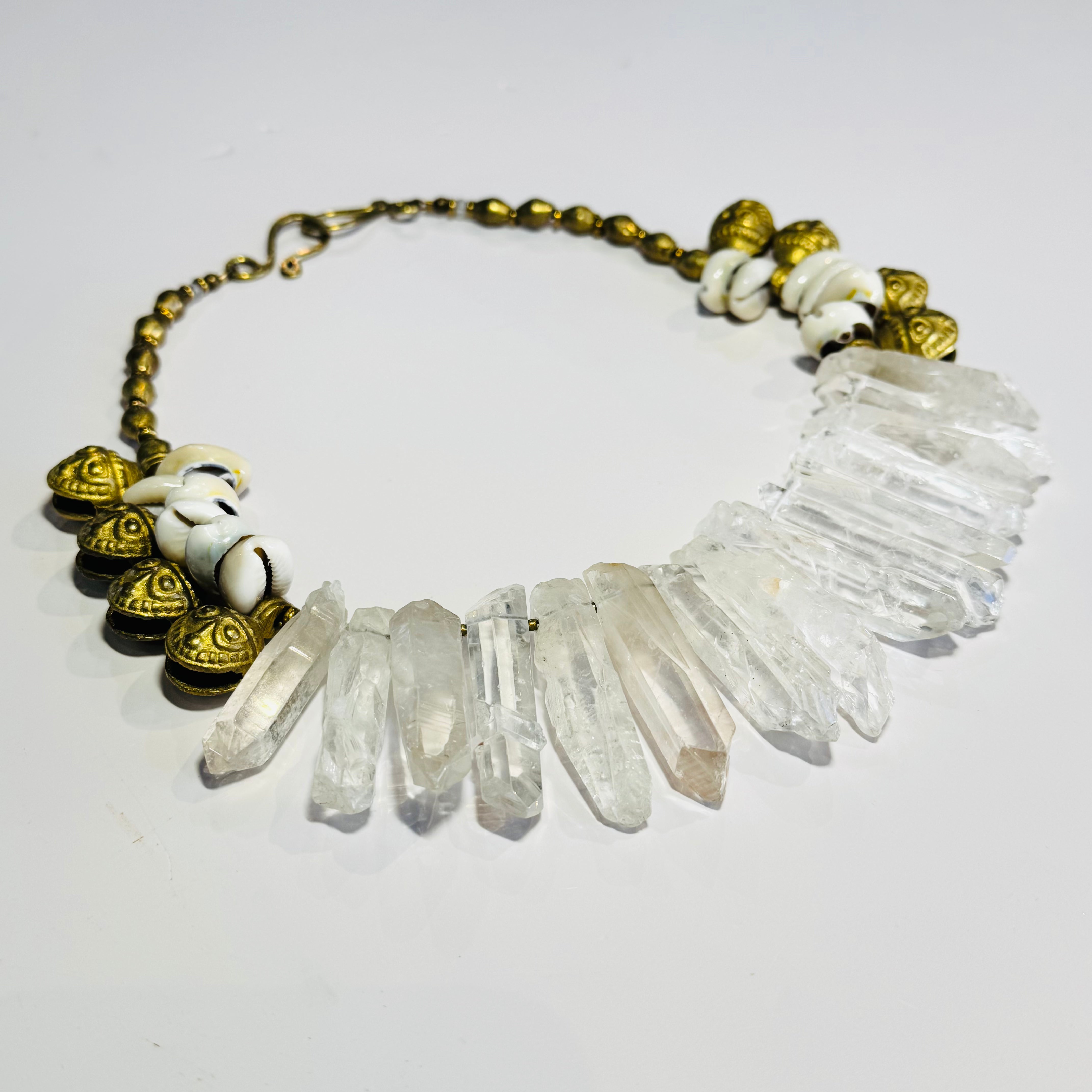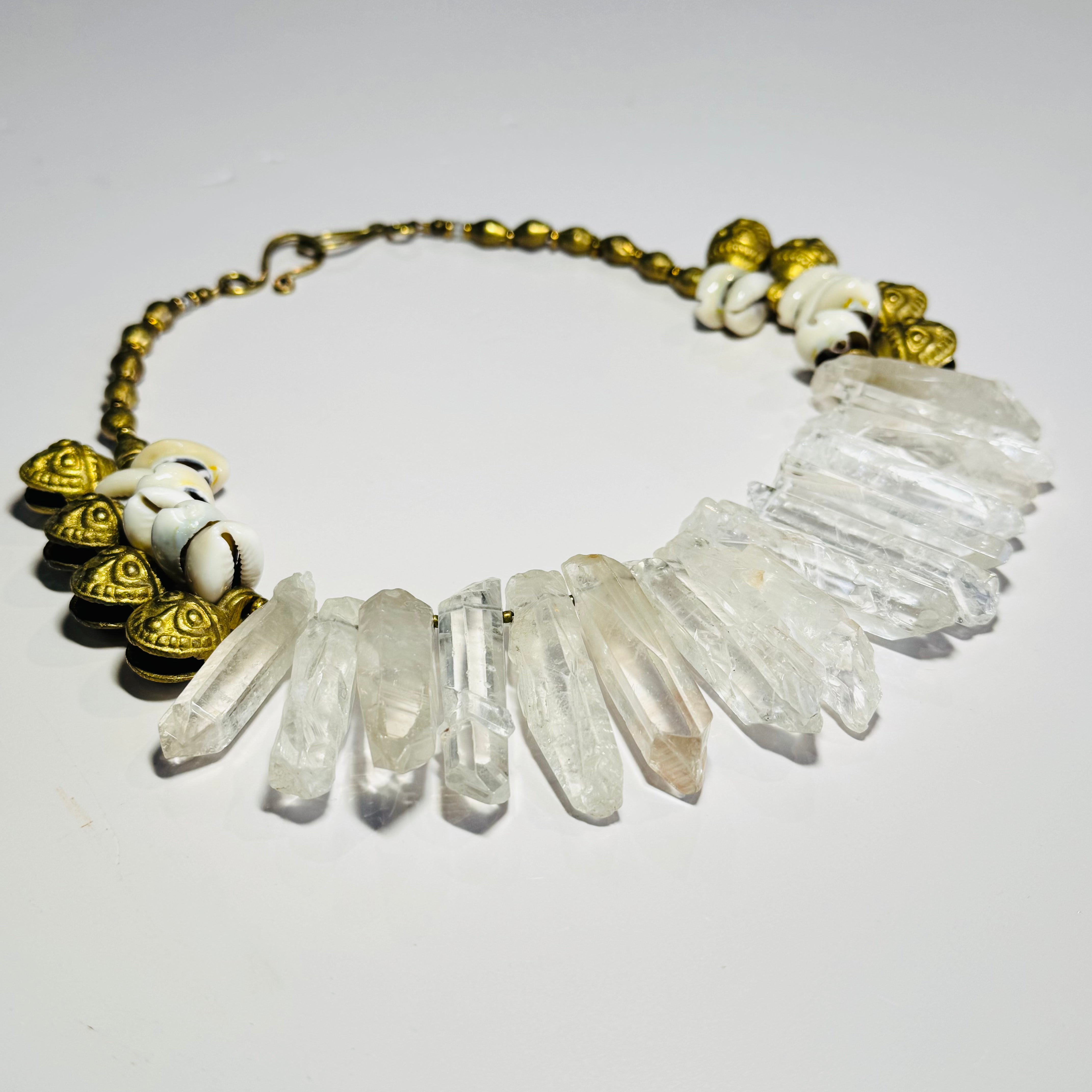 SALE - Quartz Rough Bell Bib Necklace w/ Cowrie Shells