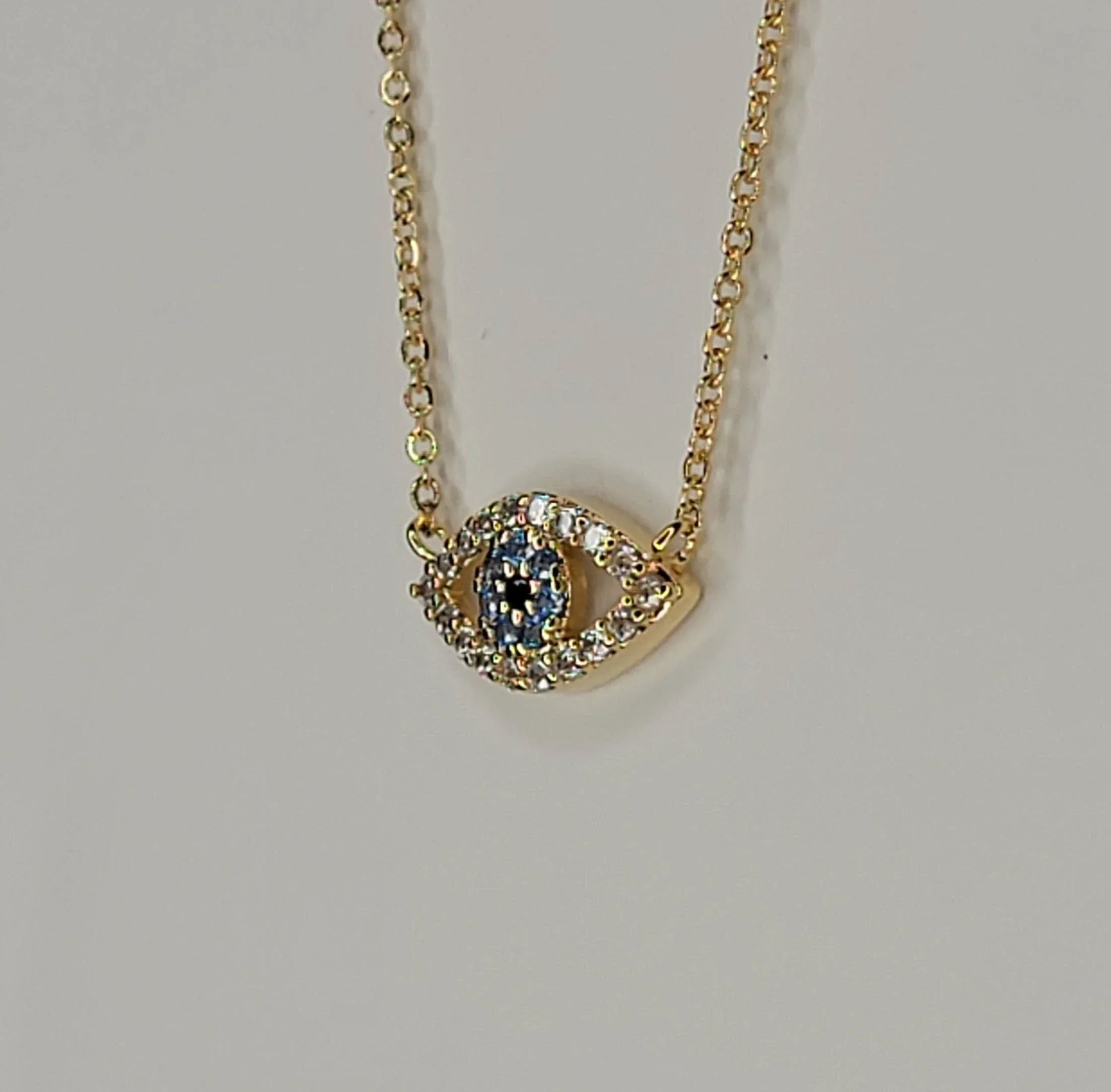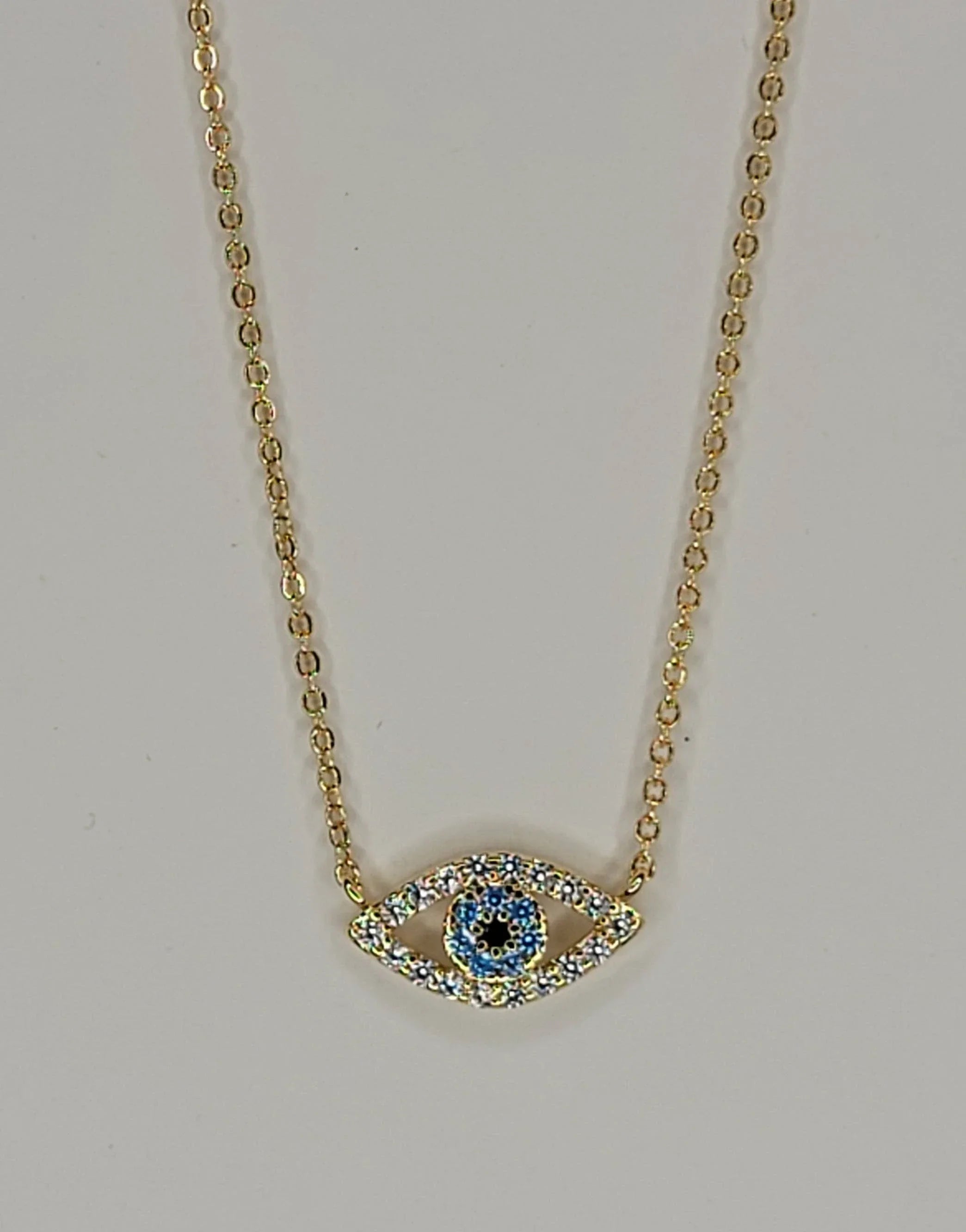 Eye of Protection, Puffy Heart, and Kiss Charms on 14k Gold Filled Bar Chain
