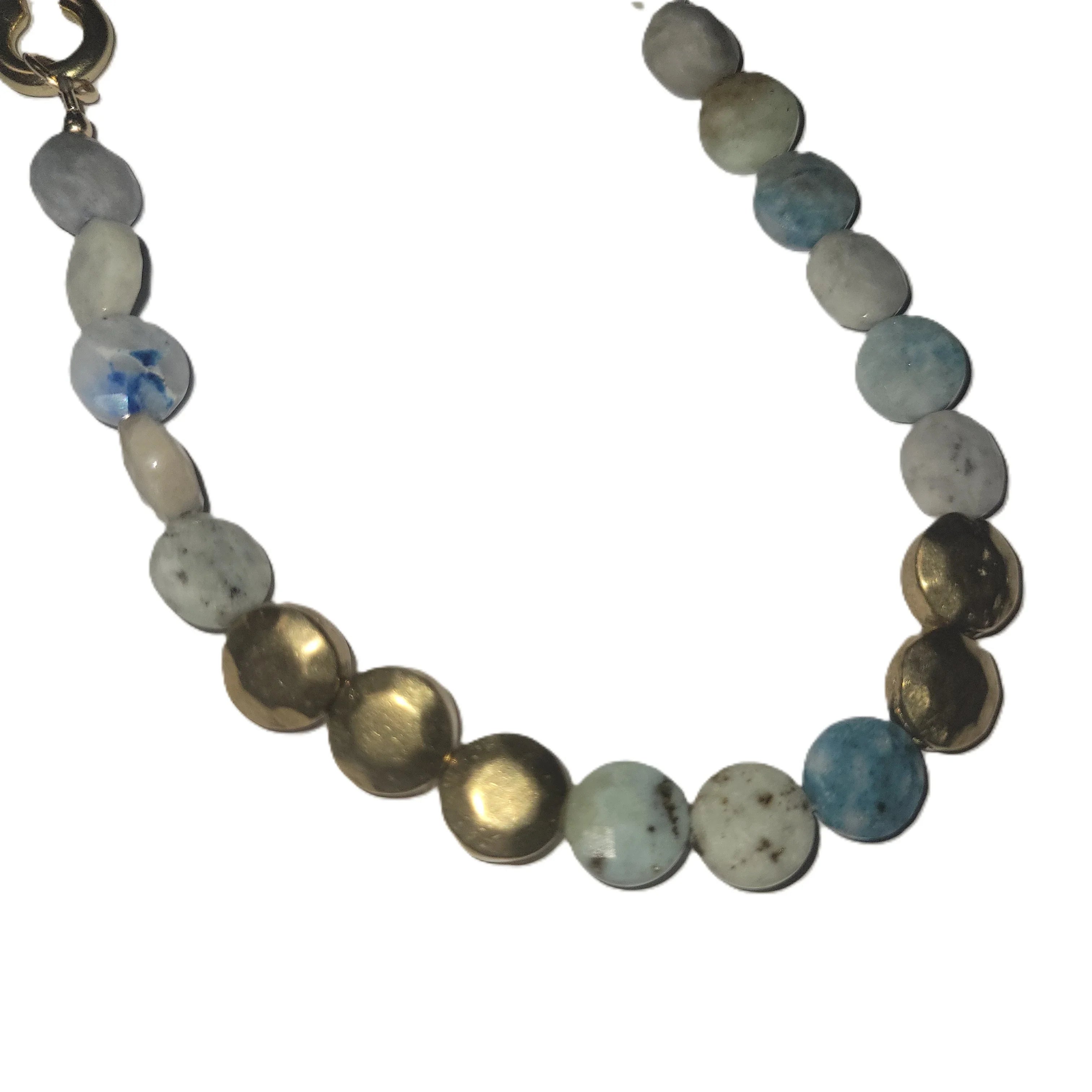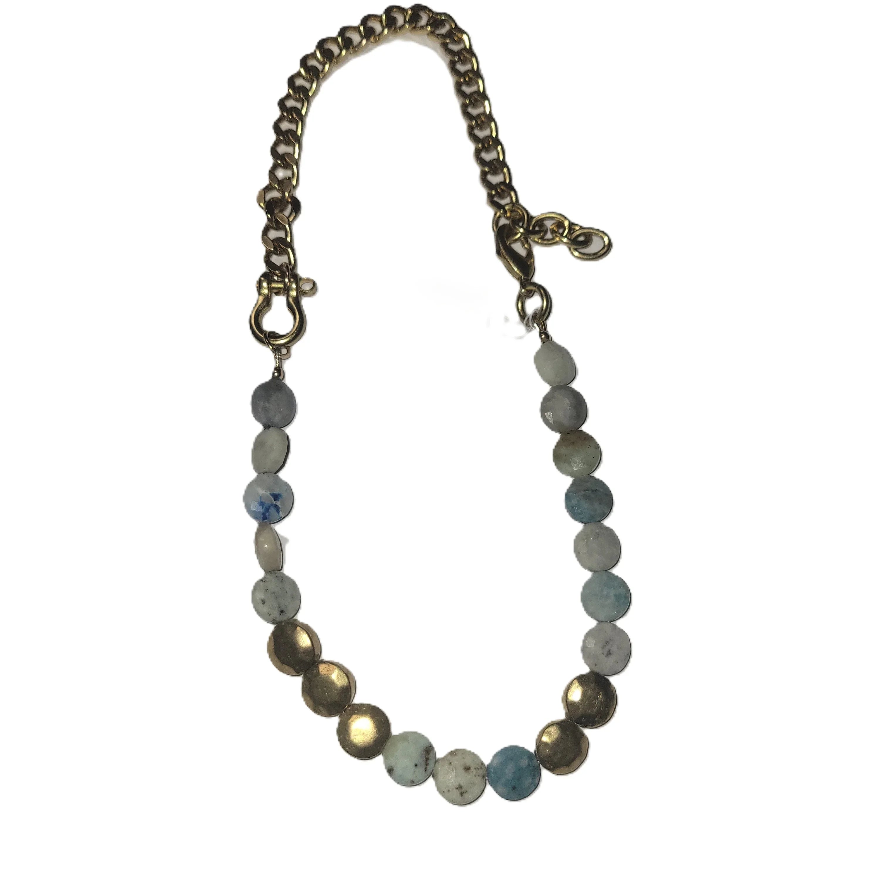 Hackmanite & Brass Sand Dollar Coin Curb Chain Necklace, Brass, 17"