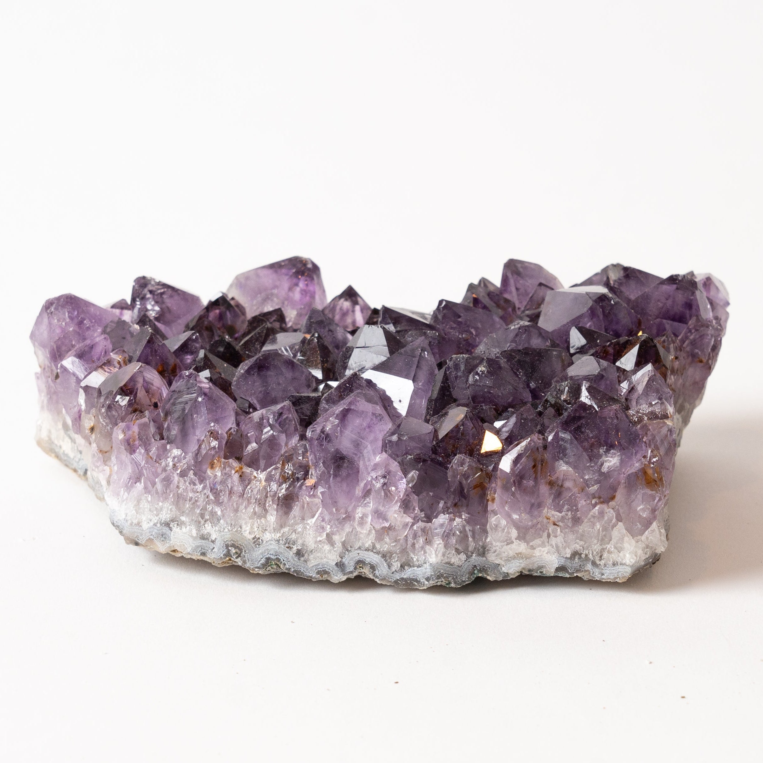 Amethyst resonates with the crown chakra clearing our connection to Spirit, empowering us, relieving stress and pain, and releasing fear. Amethyst creates a barrier of psychic protection, and clears and sobers the mind. It is a wonderful stone to use for issues with pain, sleep, focus, addiction, or anxiety.