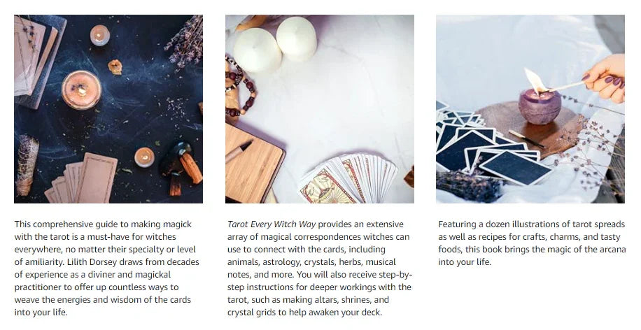 Immerse yourself in the magic of tarot as Lilith Dorsey introduces you to the many ways it can complement your witchcraft. Taking you beyond simple card meanings, this book offers culinary recipes, immersive meditations, effective spells, engaging crafts, insightful spreads, and much more. With hundreds of tips and activities, this extensive guide is full of inspiration for every magical practitioner.