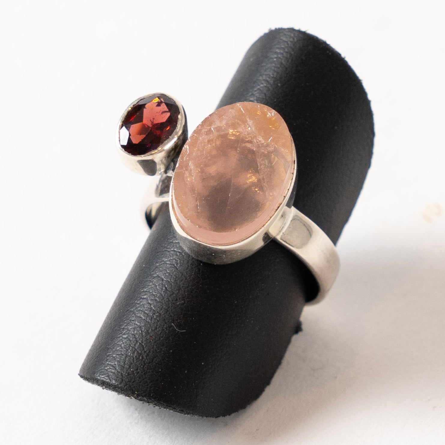 Rose Quartz and Garnet Ring
