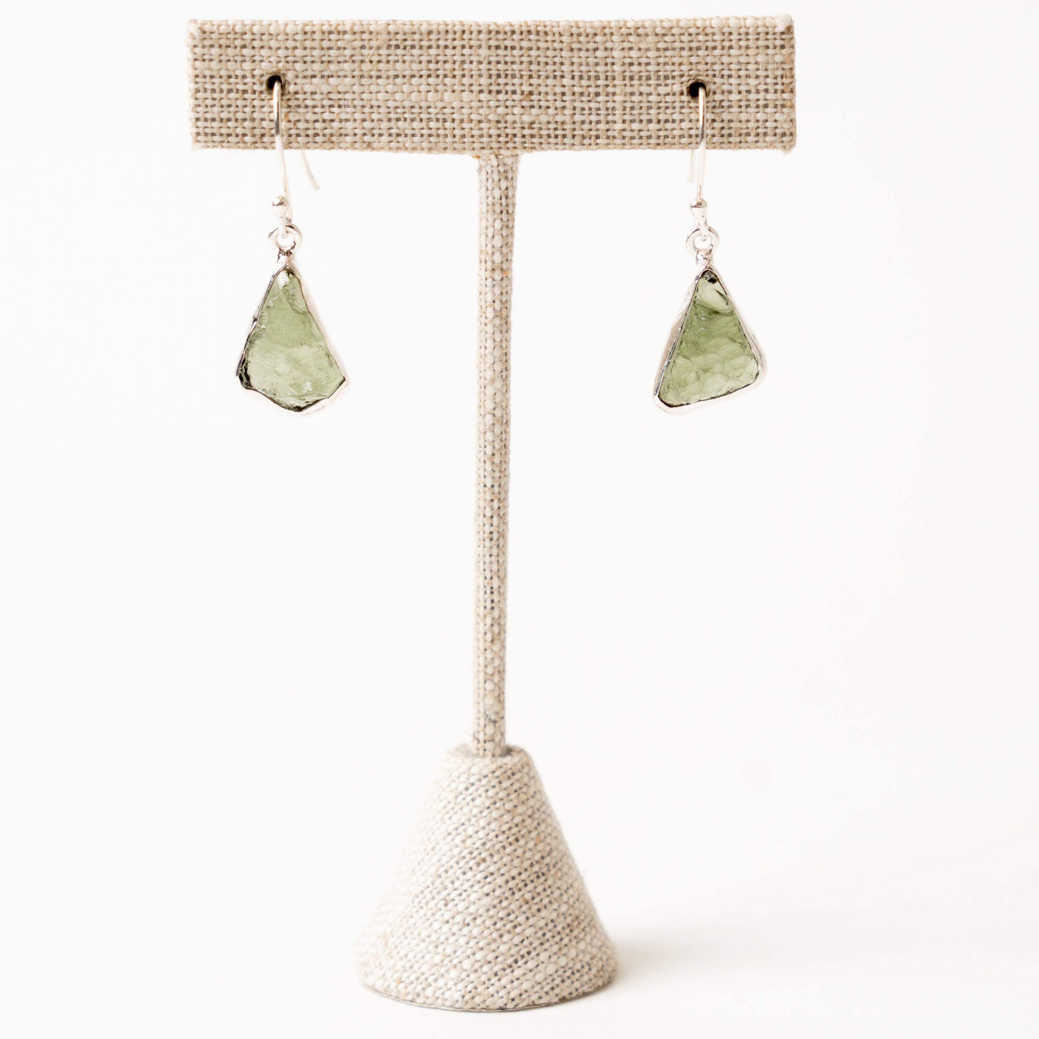 Moldavite Dangle Earrings Sterling Silver