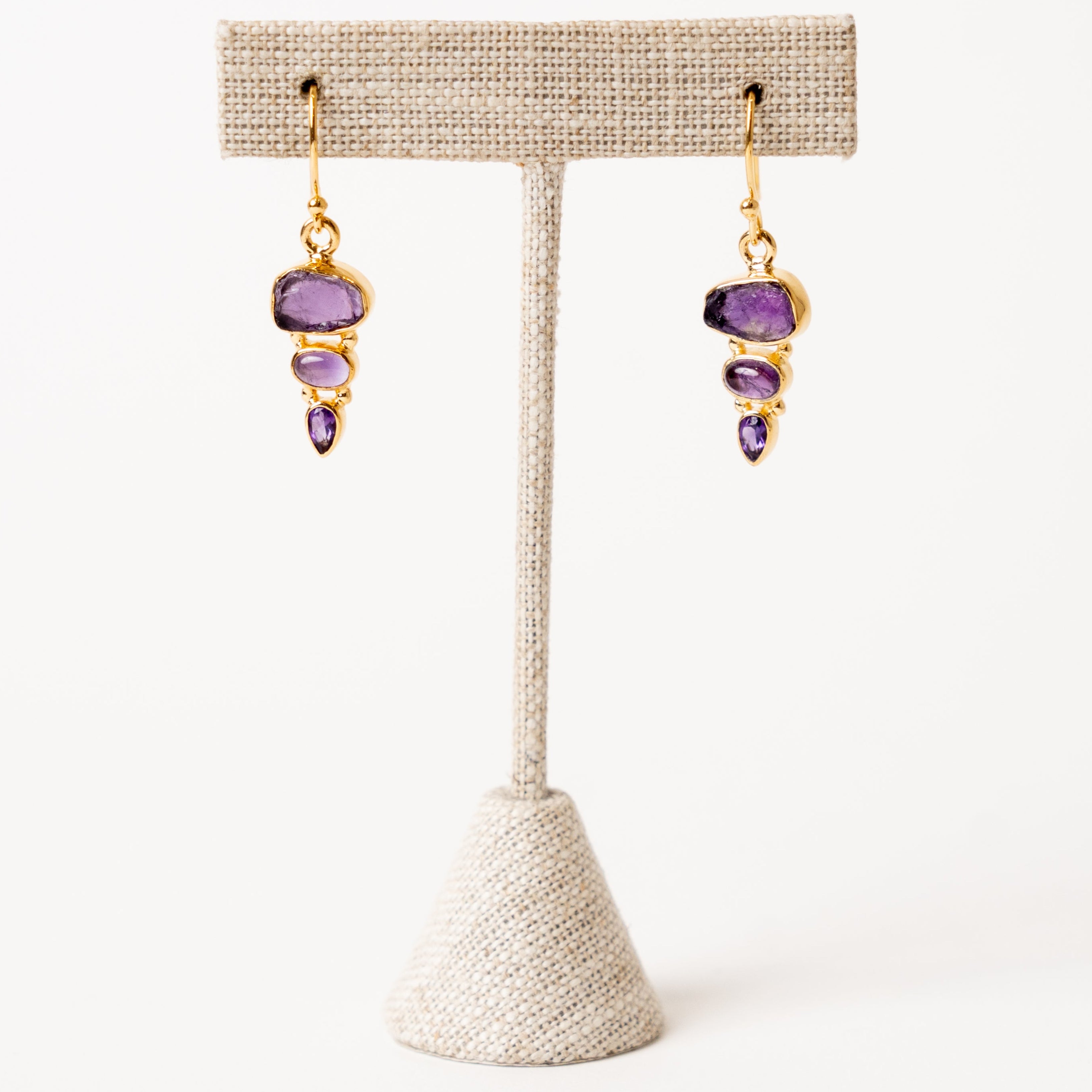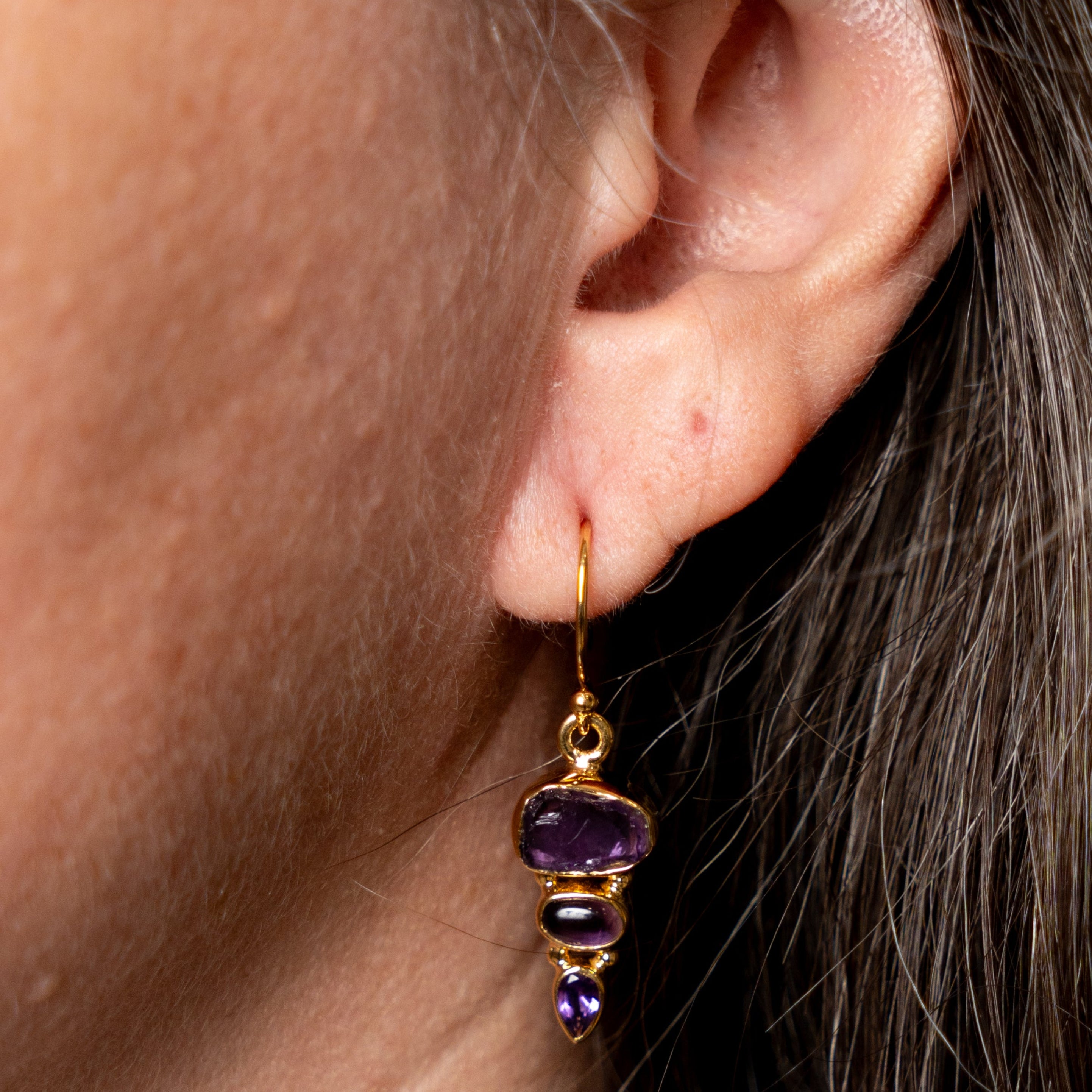 Amethyst 3-stone Earrings Gold Vermeil