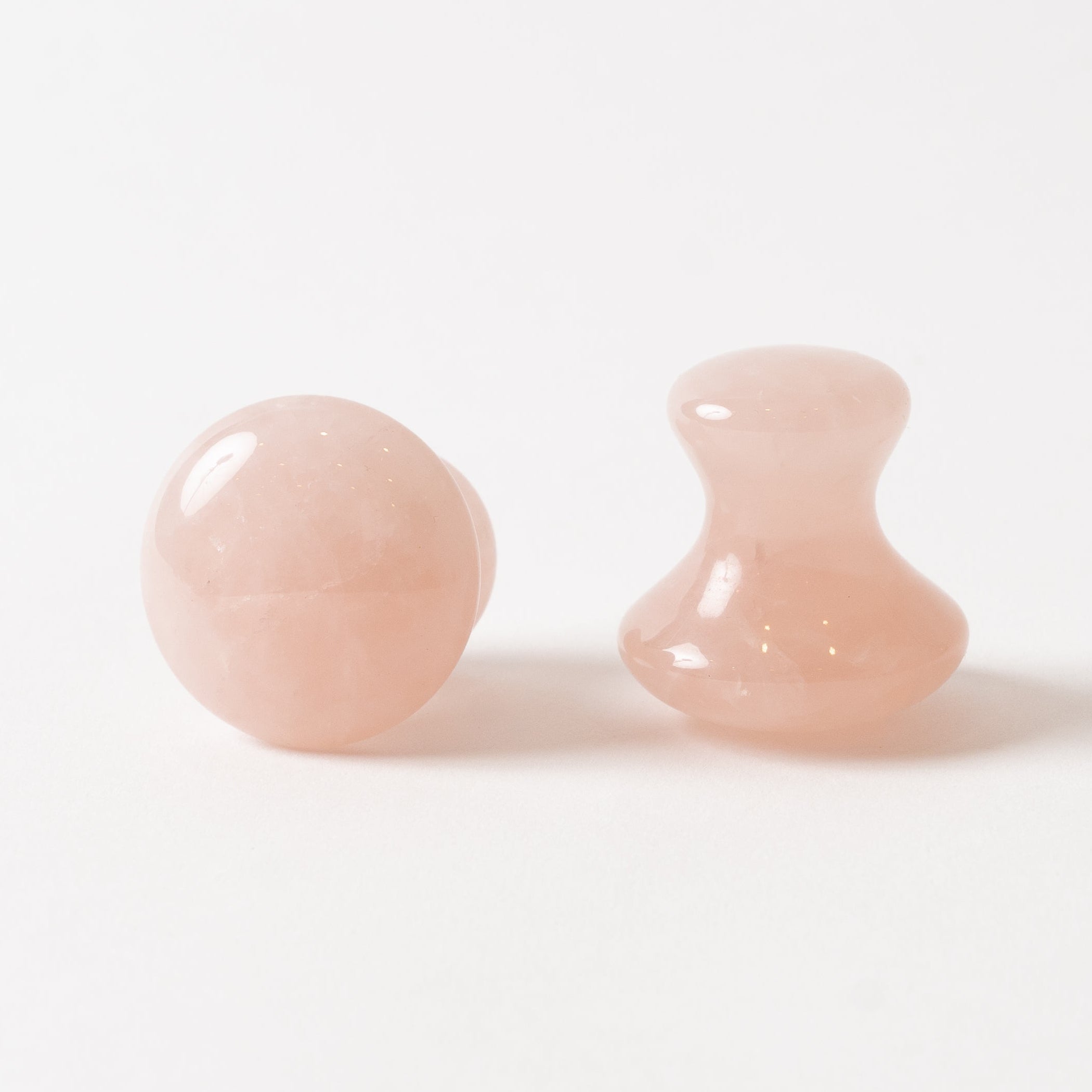 • Crafted from natural rose quartz, each tool is unique in size, color, and texture.