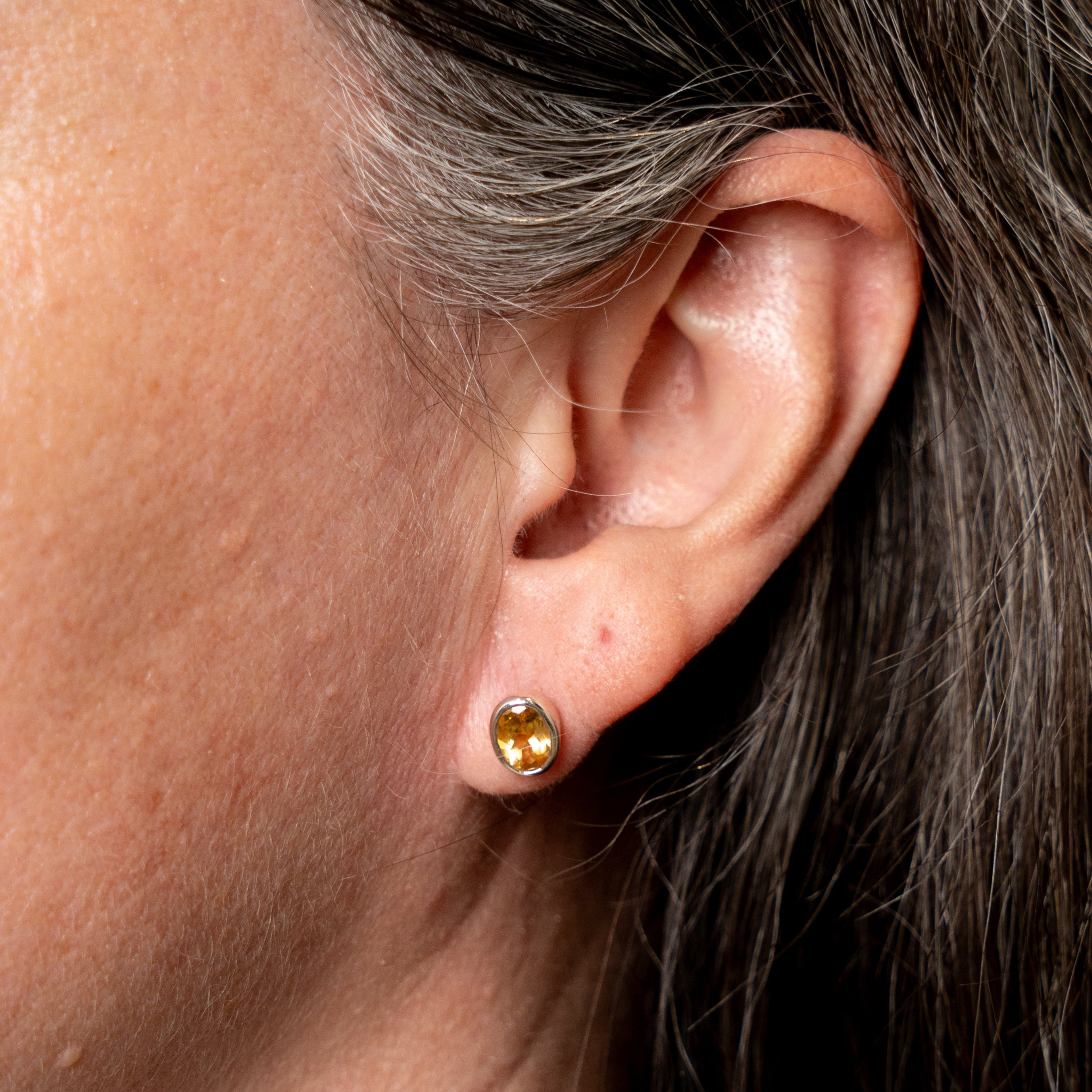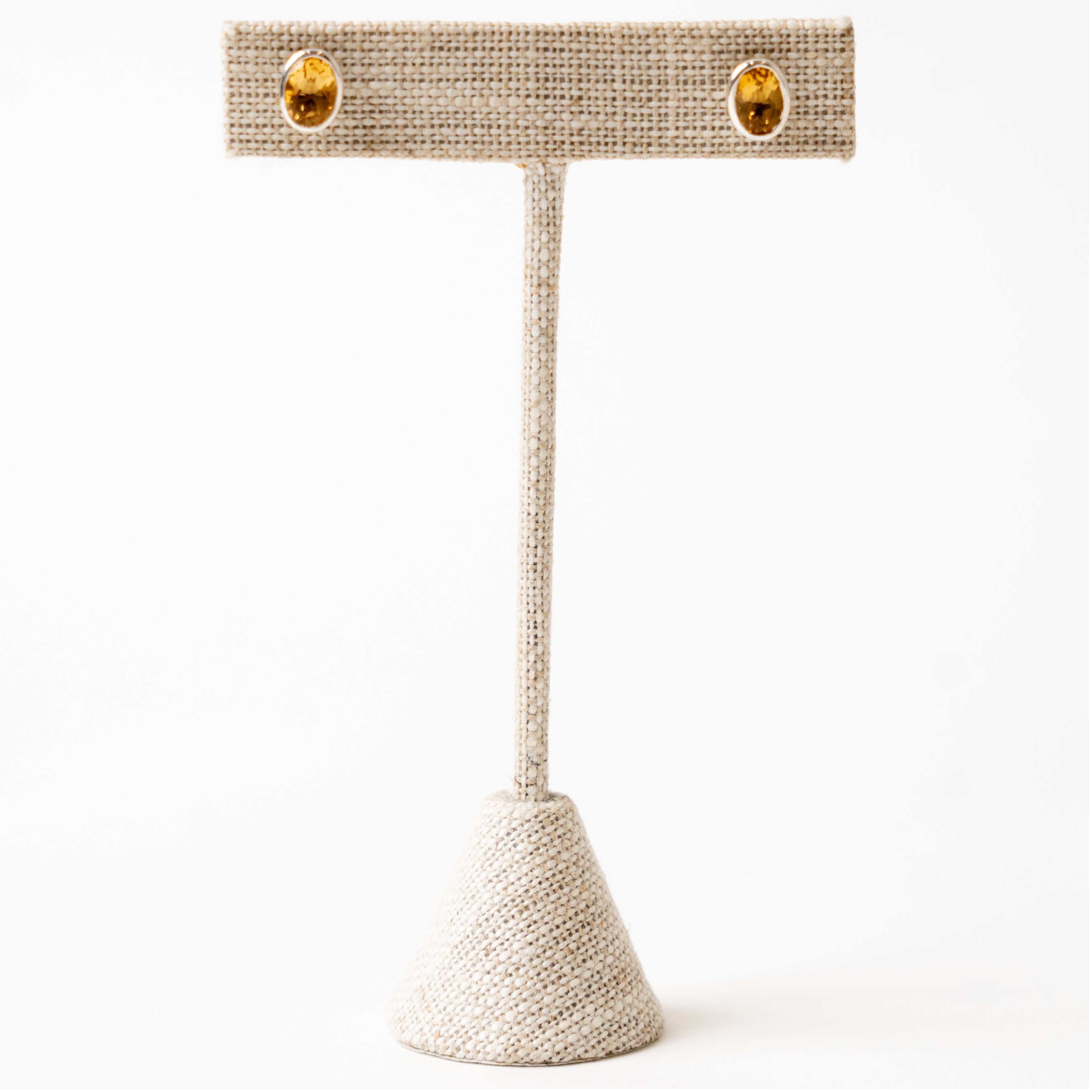 Citrine Earrings Stud Oval Sterling Silver