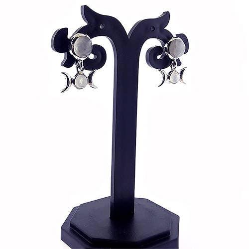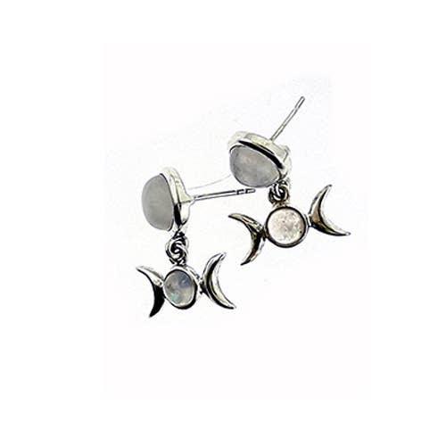 Triple Goddess Sterling Stud Earrings - Rainbow Moonstone