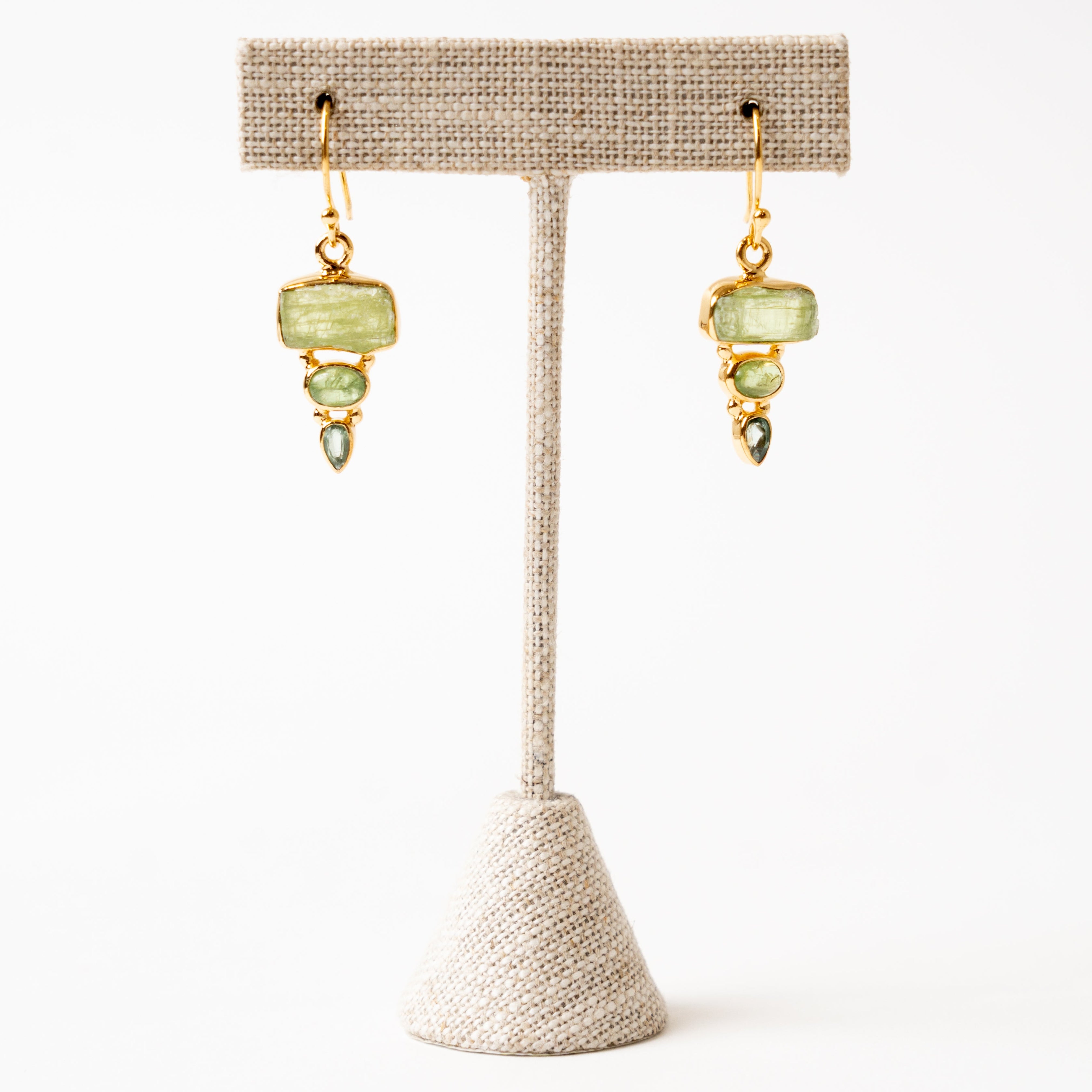 Mint Green Kyanite 3-stone Earrings Gold Vermeil