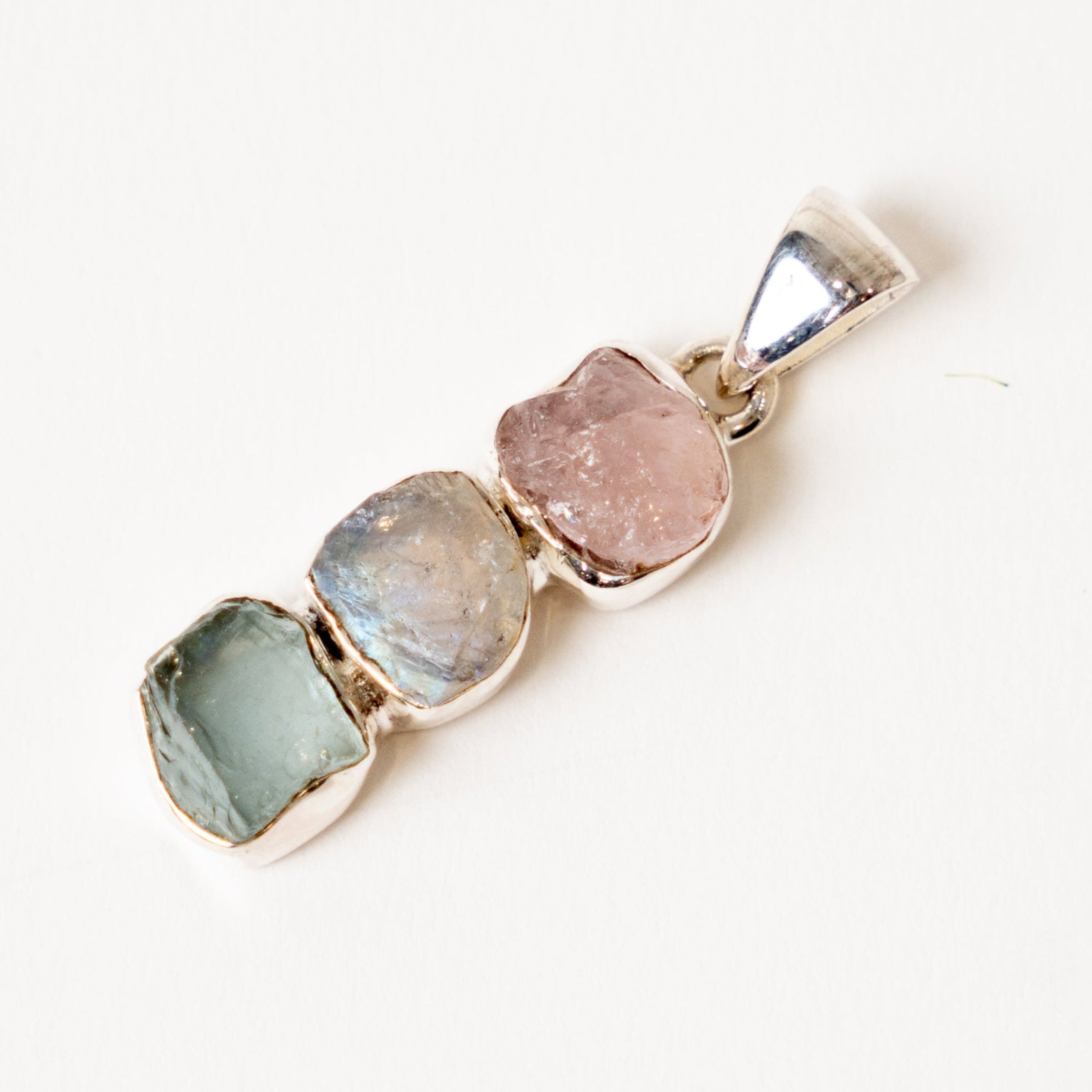 3-stone Pendant Morganite-Rainbow Moonstone-Aquamarine