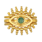 Emerald Radial Evil Eye Ring features an Evil eye for protection and an Emerald for wisdom and abundance.