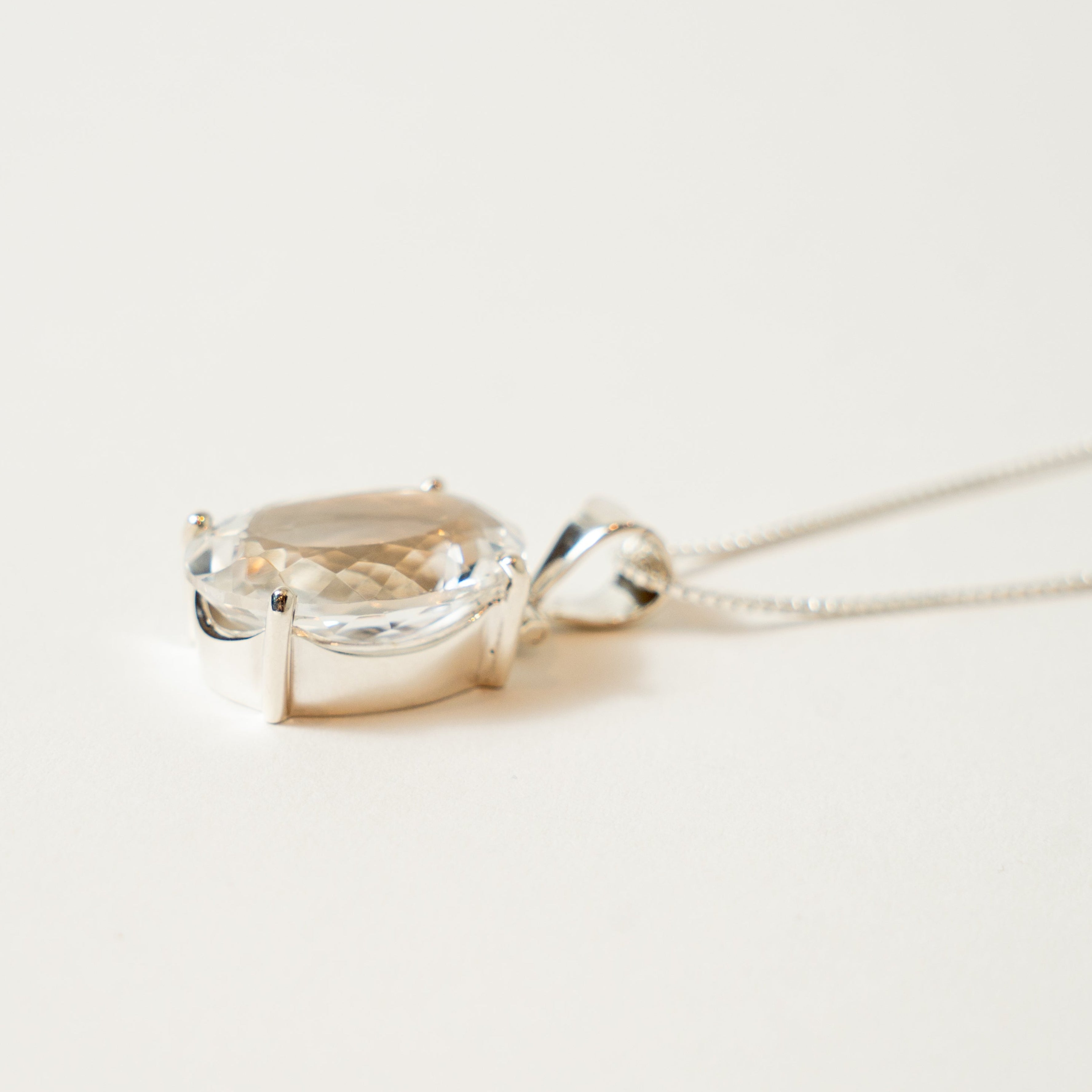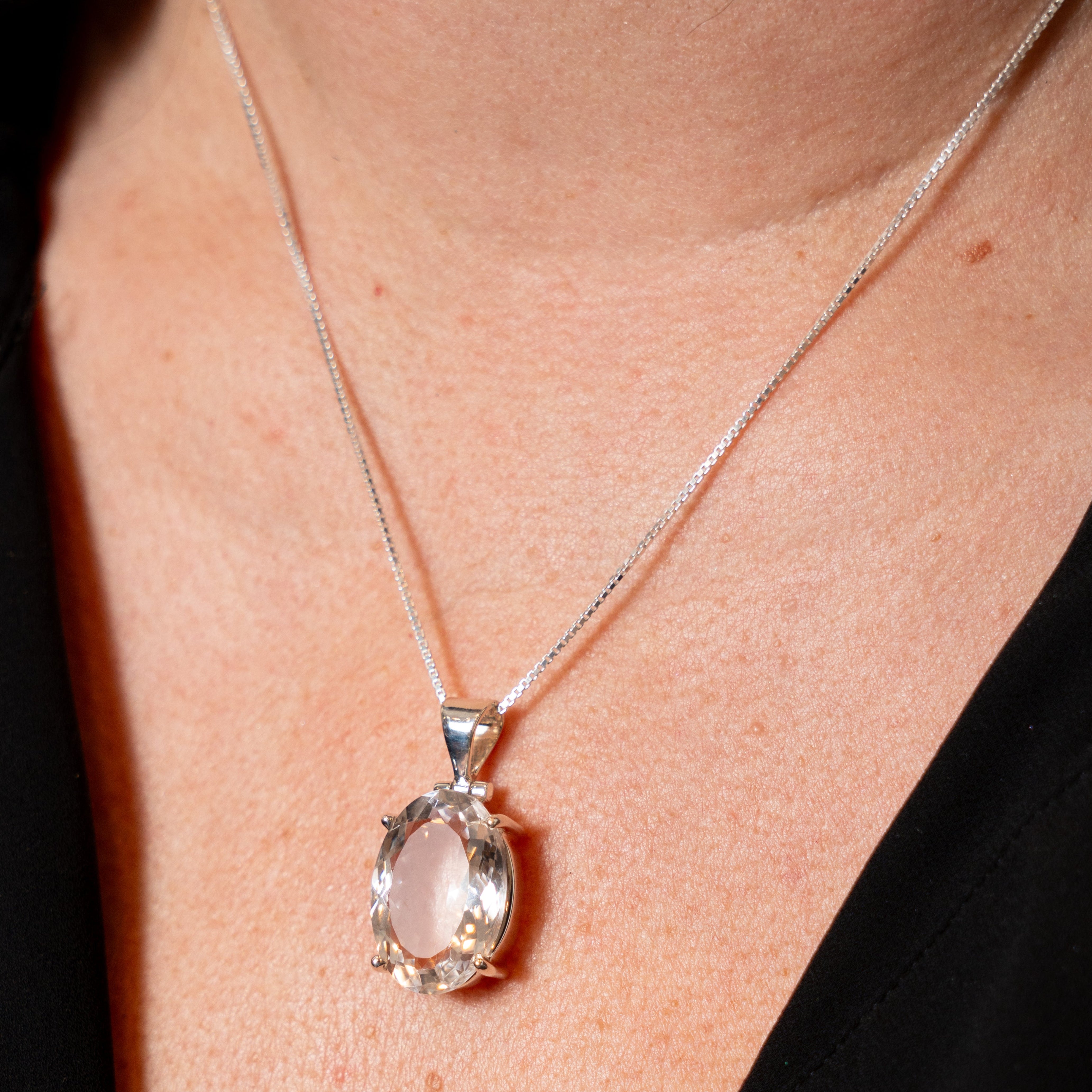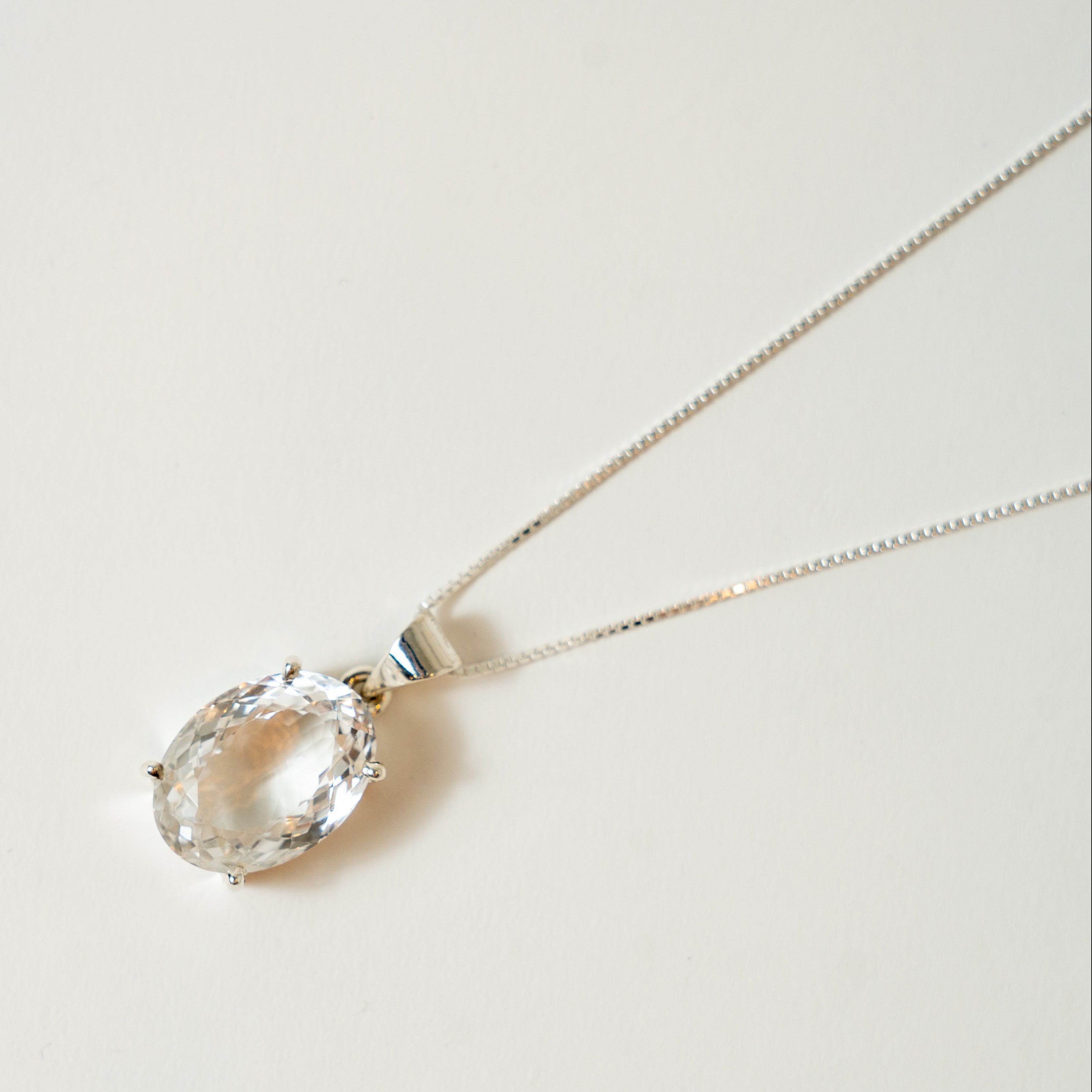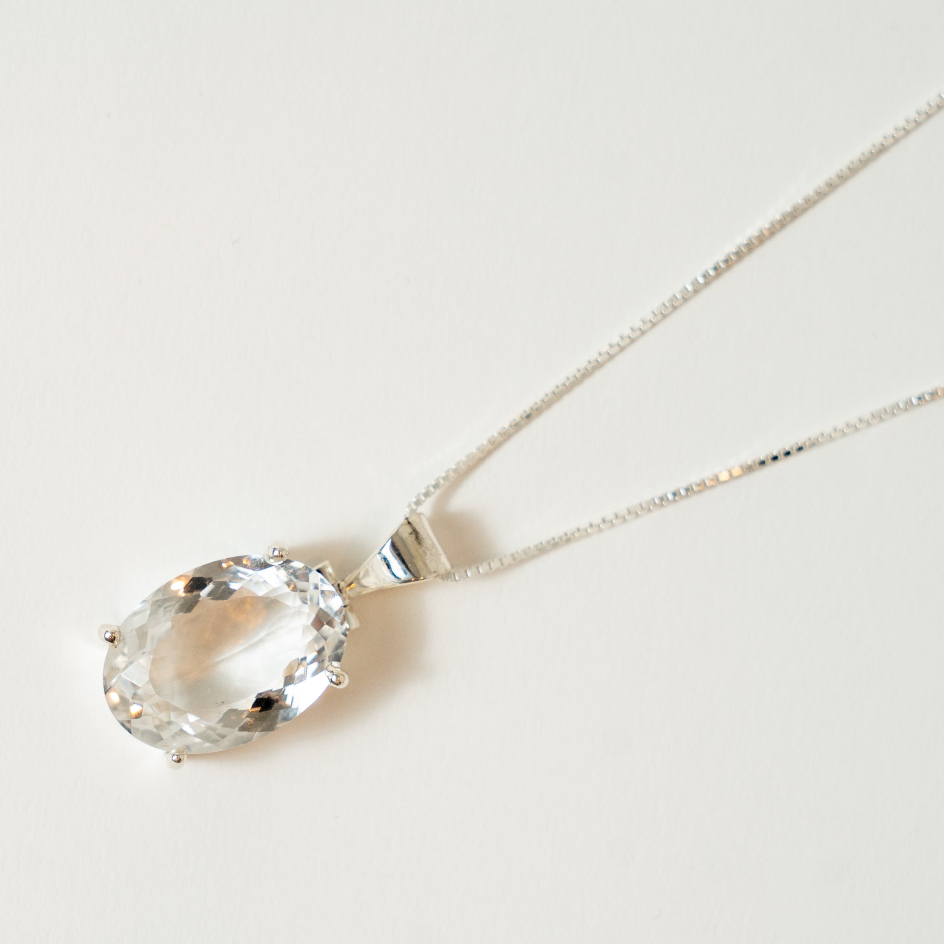 Illuminate your spirit with our stunning Quartz Clear Oval Faceted Pendant in Sterling Silver. This exquisite piece harmonizes elegance and metaphysical energy, crafted to enhance clarity and balance in your life.
