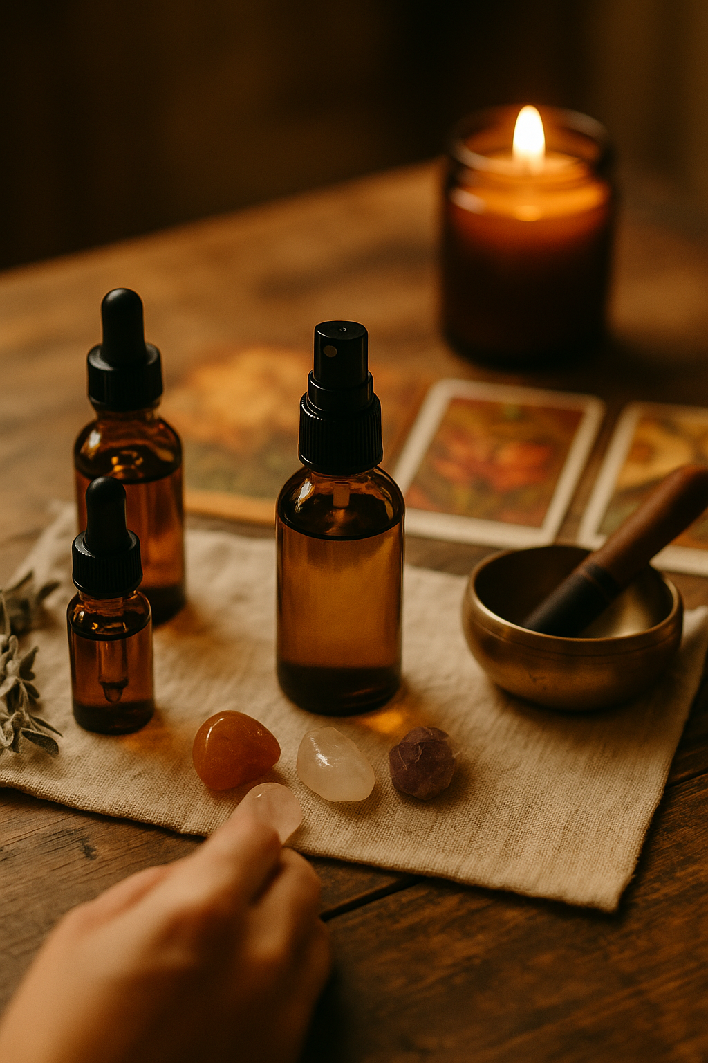 Oils, bottles, crystals, oracle cards, and sound will be provided during the workshop and available for purchase afterward.