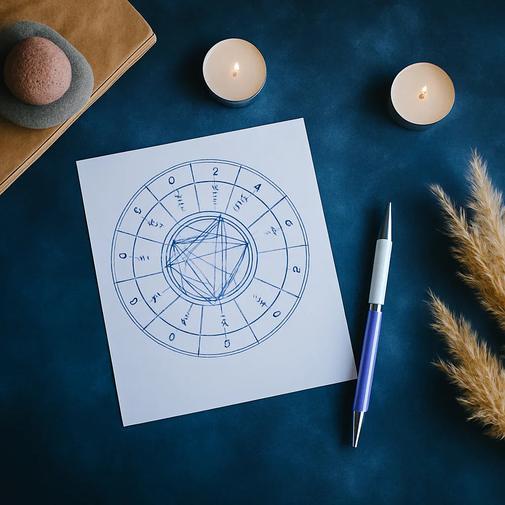 A copy of your natal chart (printed or digital — free charts can be generated at astro.com or astro-charts.com)