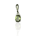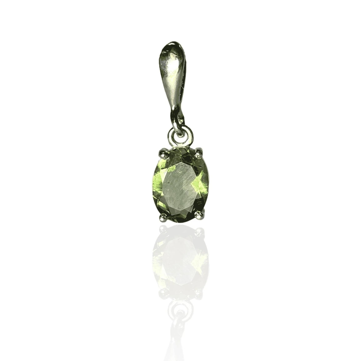 Embrace the transformative energy of this stunning Moldavite Faceted Oval Pendant, expertly set in gleaming Sterling Silver. Moldavite, a rare green tektite formed from an ancient meteorite impact, has long been cherished by crystal enthusiasts for its powerful spiritual properties and connection to cosmic energy.