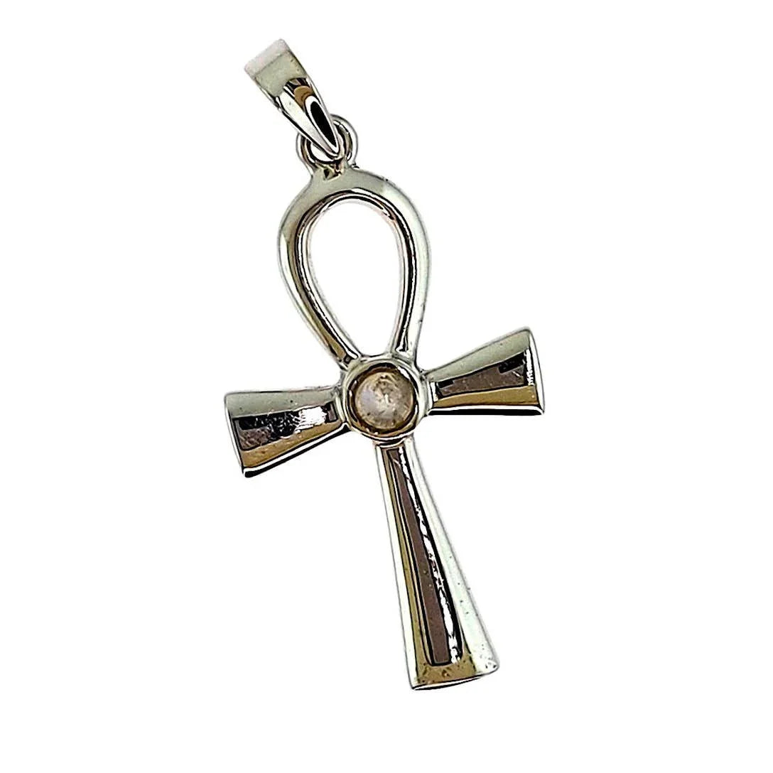 Rainbow Moonstone Large Ankh Sterling Silver Pendant
