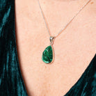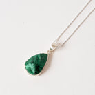 Handcrafted with care, the teardrop design beautifully highlights the rich, green hues and swirls of malachite.