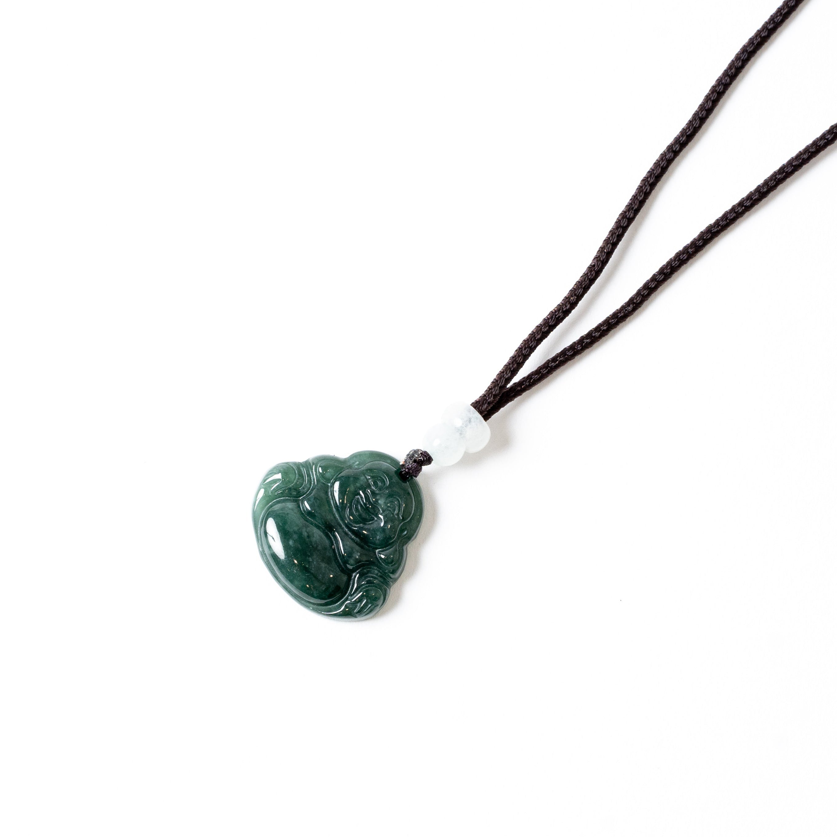 Lucky Jade Buddha Stone Pendant on Cord Necklace