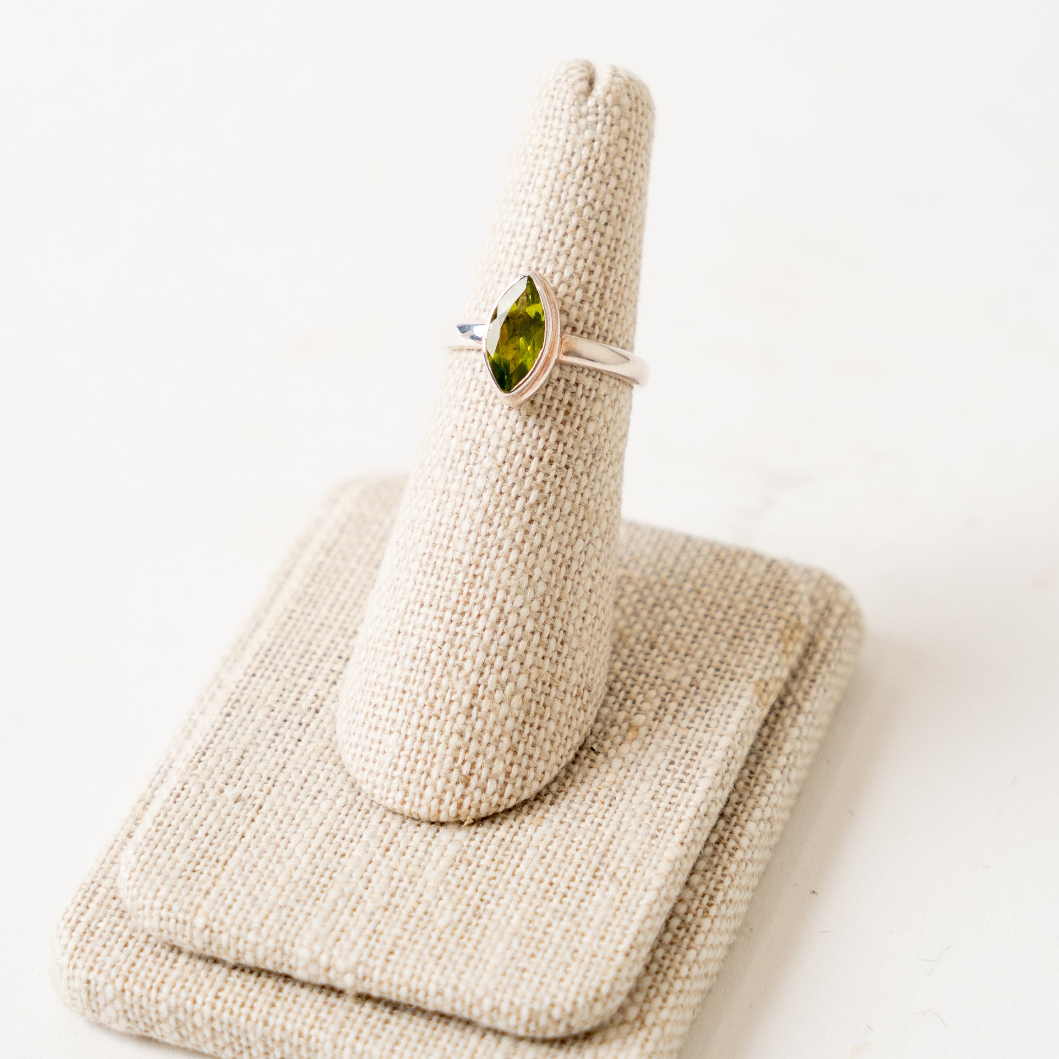 Elevate your spiritual journey with our Peridot Marquise Faceted Ring in Sterling Silver, size 5. Known as the "gem of the sun," peridot is cherished for its vibrant green hue and its ability to foster growth, balance, and prosperity. This exquisite ring not only enhances your style but also serves as a powerful reminder of your strength and purpose.