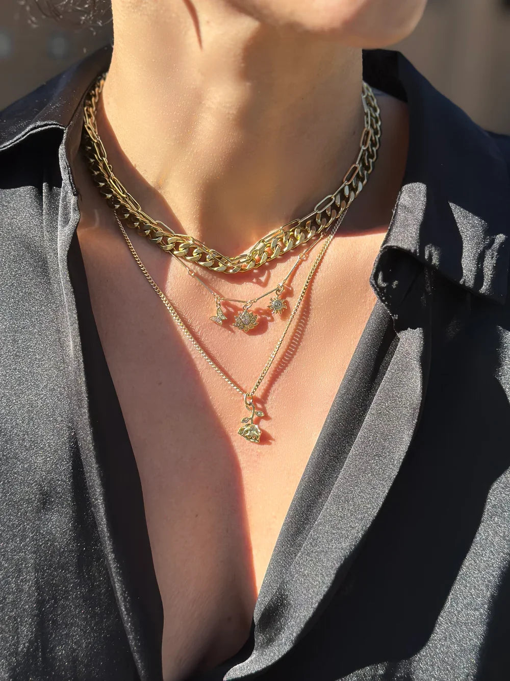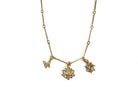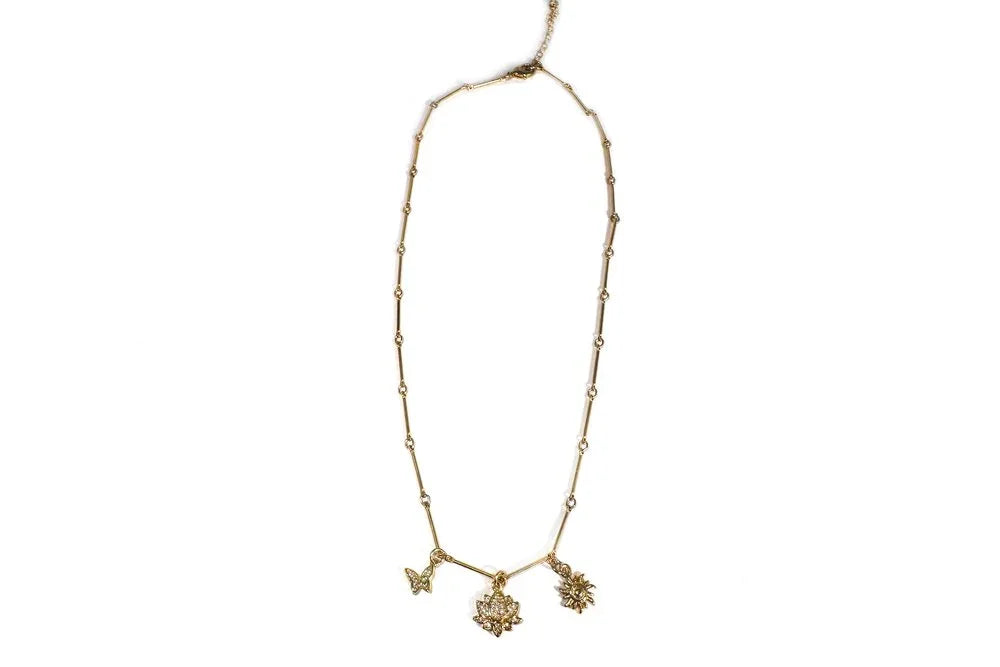 Butterfly, Lotus, and Sun Charms on 14k Gold Filled Bar Chain Necklace