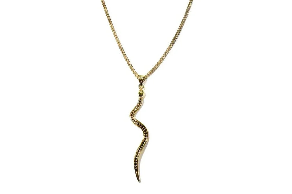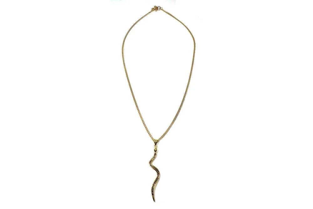 Black Crystal Snake Pendant on 18k Gold Filled Curb Chain