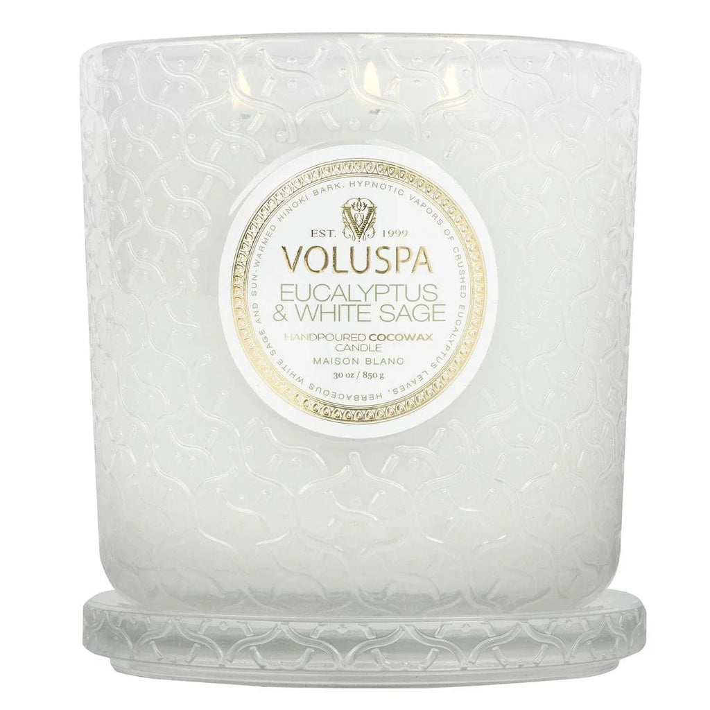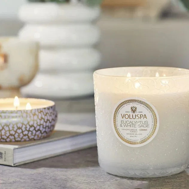 Voluspa's unique coconut wax blend is hand-poured into a 30 oz. pearl white glass and topped with a matching lid that keeps the candle dust-free when not in use, and doubles as a base when lit. Our three wicks allow you to enjoy fragrance throw for 80 hours. Up-cycle this best seller into a keepsake after the last burn.