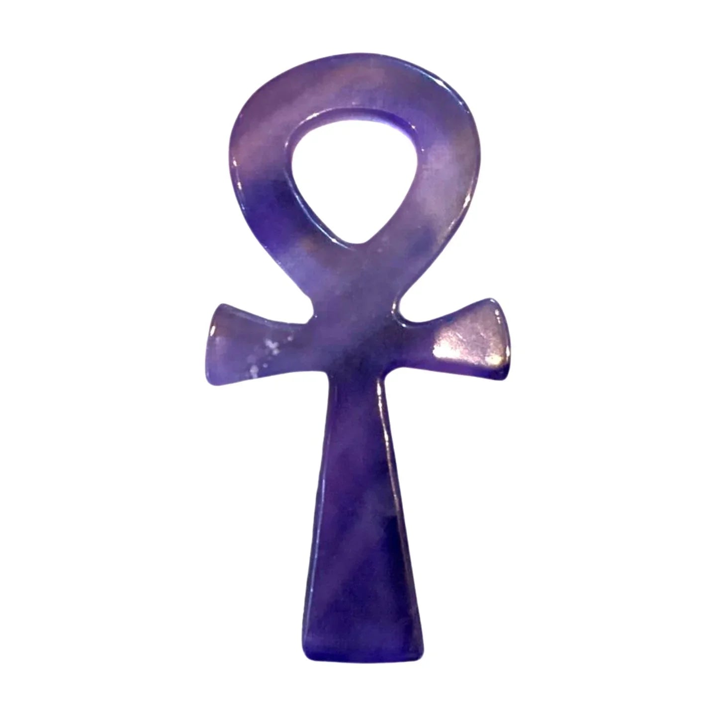 Illuminate your life with the powerful energy of the Fluorite Ankh Cross. This unique statue features a carved fluorite stone ankh, imbuing it with both the protective properties of the ancient Egyptian symbol and the healing properties of the vibrant fluorite stone.