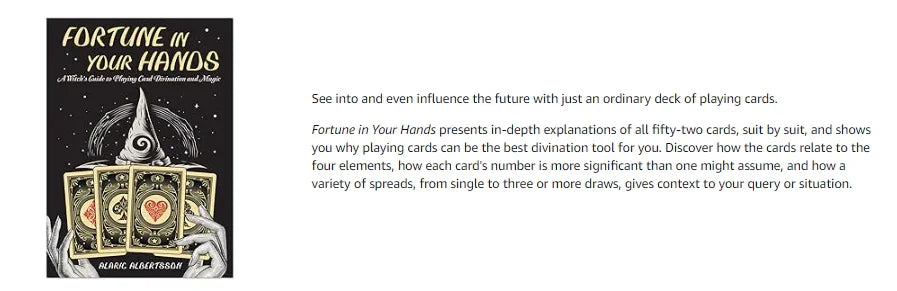 Fortune in Your Hands presents in-depth explanations of all fifty-two cards, suit by suit, and shows you why playing cards can be the best divination tool for you. Discover how the cards relate to the four elements, how each card's number is more significant than you might assume, and how a variety of spreads gives context to your query or situation. Learn the ethics of divination, when and where to read cards, how to cast spells with them, and much more. With this book and a humble deck, you really can hold your fortune in your hands.