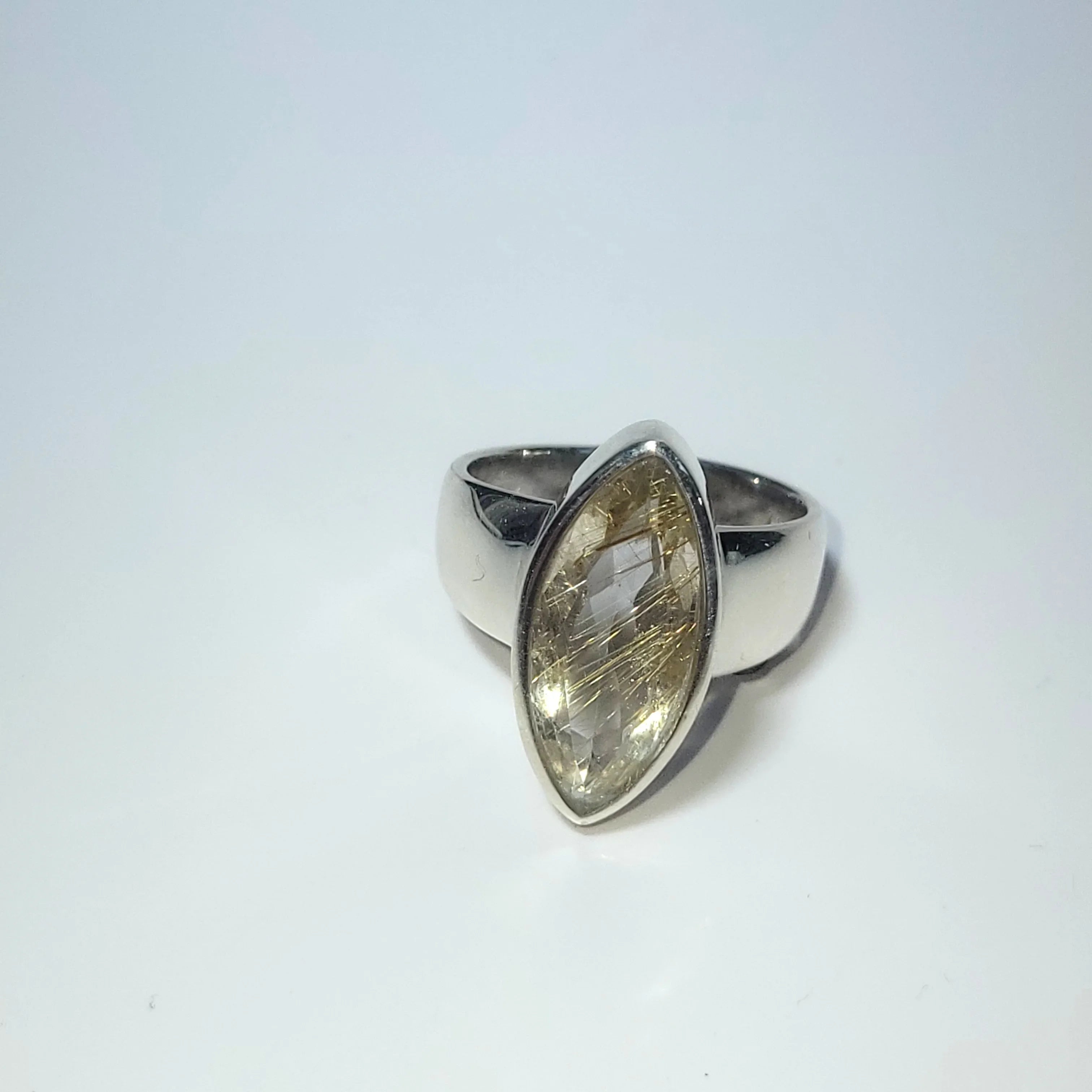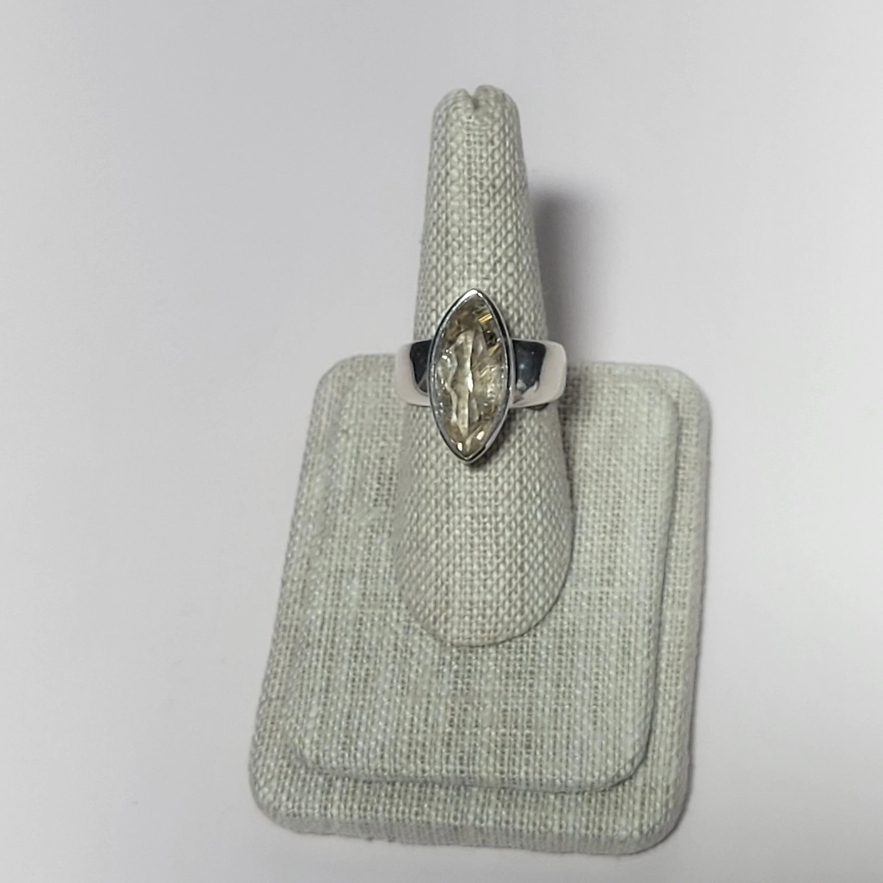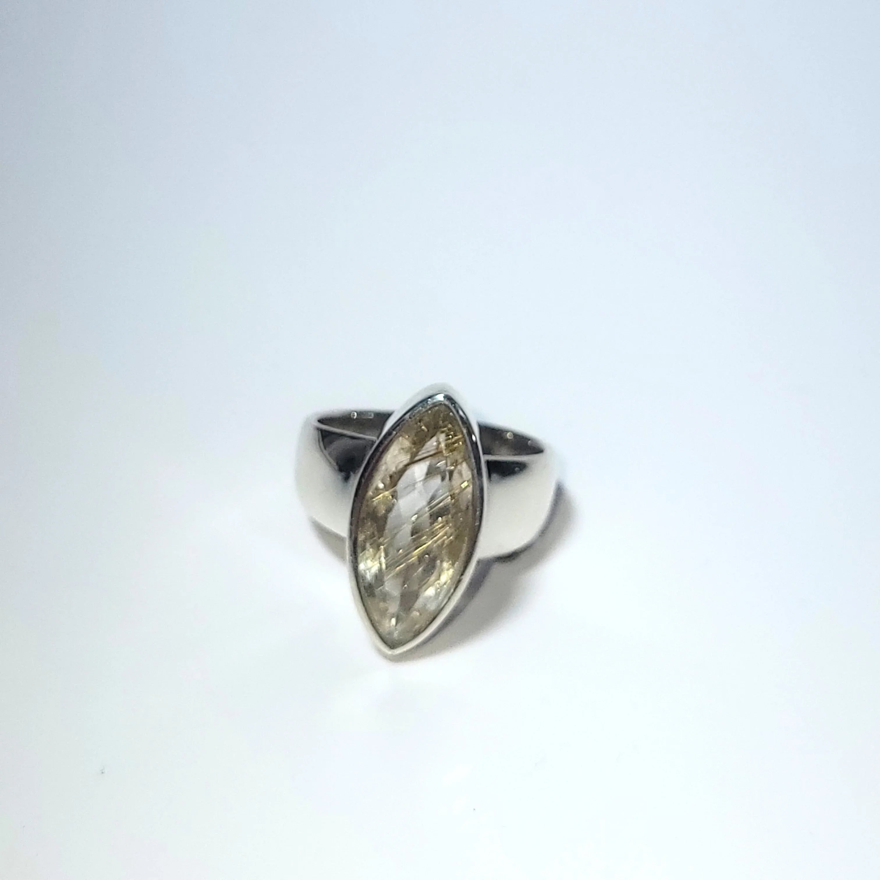 Golden Rutilated Quartz Faceted Oval Ring Sterling Silver