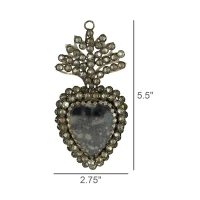 Antique mirror gently reflects the significance of the heart, bejeweled with stones this talisman may hang on a wall, adorn a gift or dress up a Christmas tree.