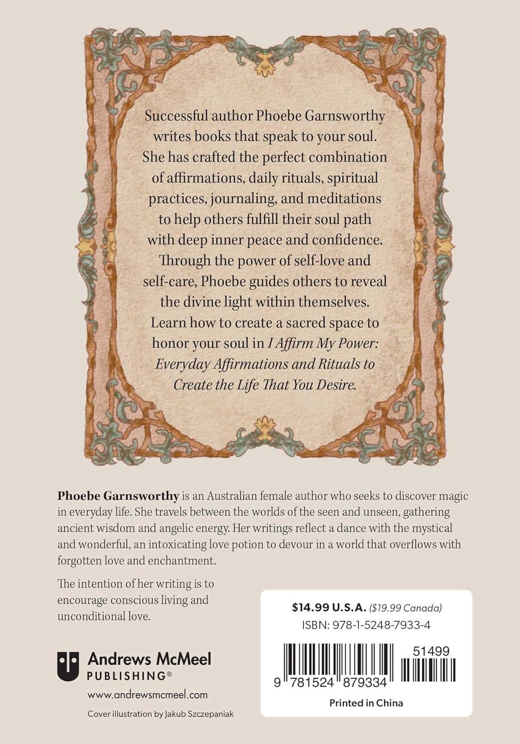 Successful writer Phoebe Garnsworthy has crafted the perfect combination of affirmations, daily rituals, spiritual practices, journaling, and meditation to help others find the sacred space to connect with their own souls. Through the power of self-love and self-care, Phoebe guides others to reveal the divine light within themselves. Create a sacred space to honor your soul, in I Affirm My Power: Everyday Affirmations and Rituals to Create the Life that You Desire.
