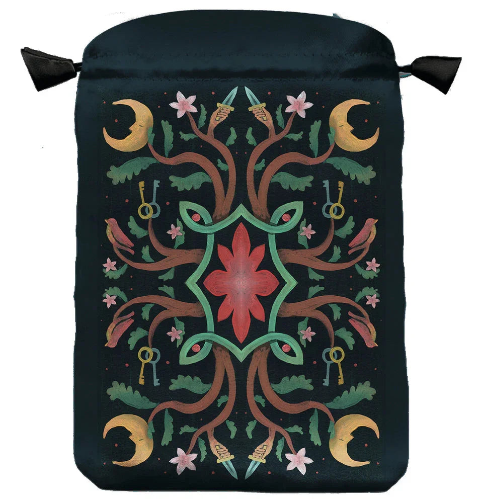 Featuring Gonzalo M. Moreno's lovely artwork, this deluxe satin bag makes a delightful accessory for protecting and transporting tarot cards, oracle decks, runes, sacred objects, jewelry, and much more. Treat yourself, and your most beloved possessions, with the care and beauty of a deluxe satin bag.