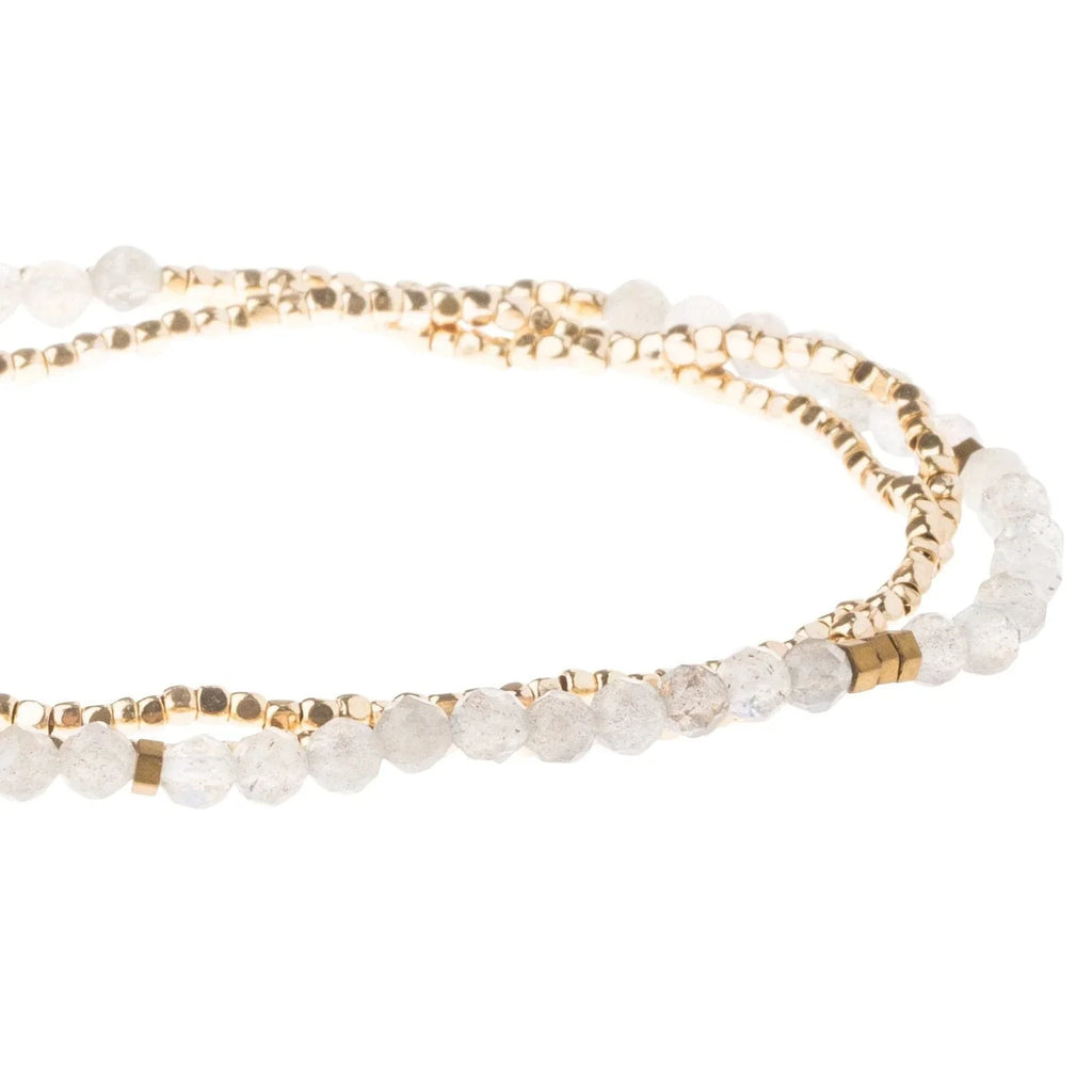 Faceted gemstones mix with tiny geometric metal beads to create a subtle and magical piece. Wraps as a bracelet 3 times or wear as a single strand necklace. Create numerous styles effortlessly!