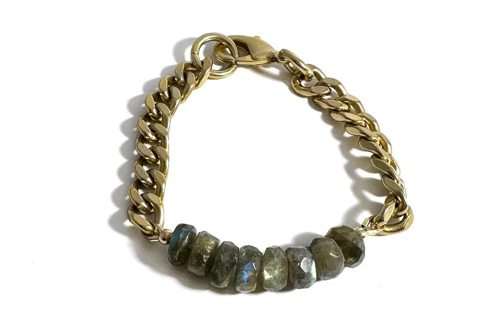 Labradorite Faceted Rondelles on Brass Curb Chain Bracelet