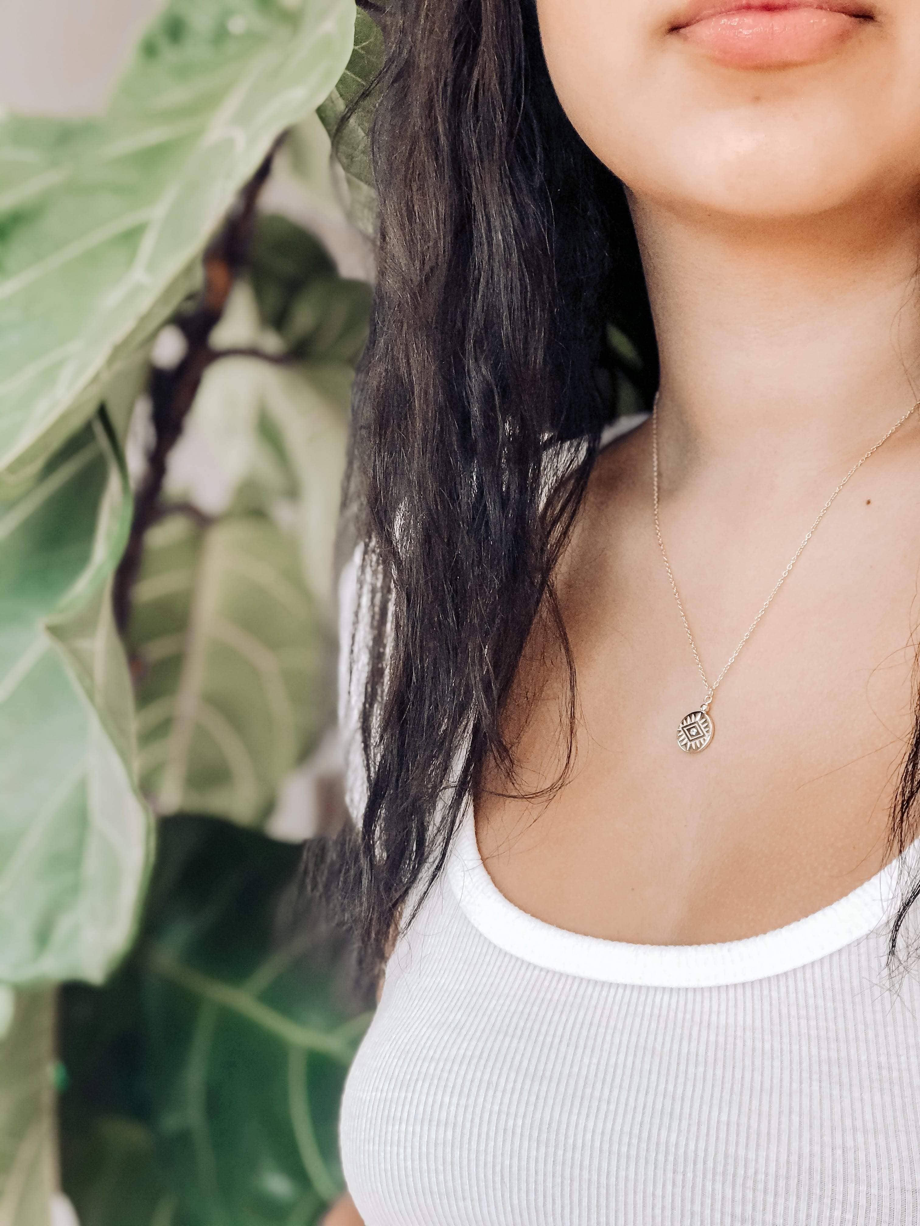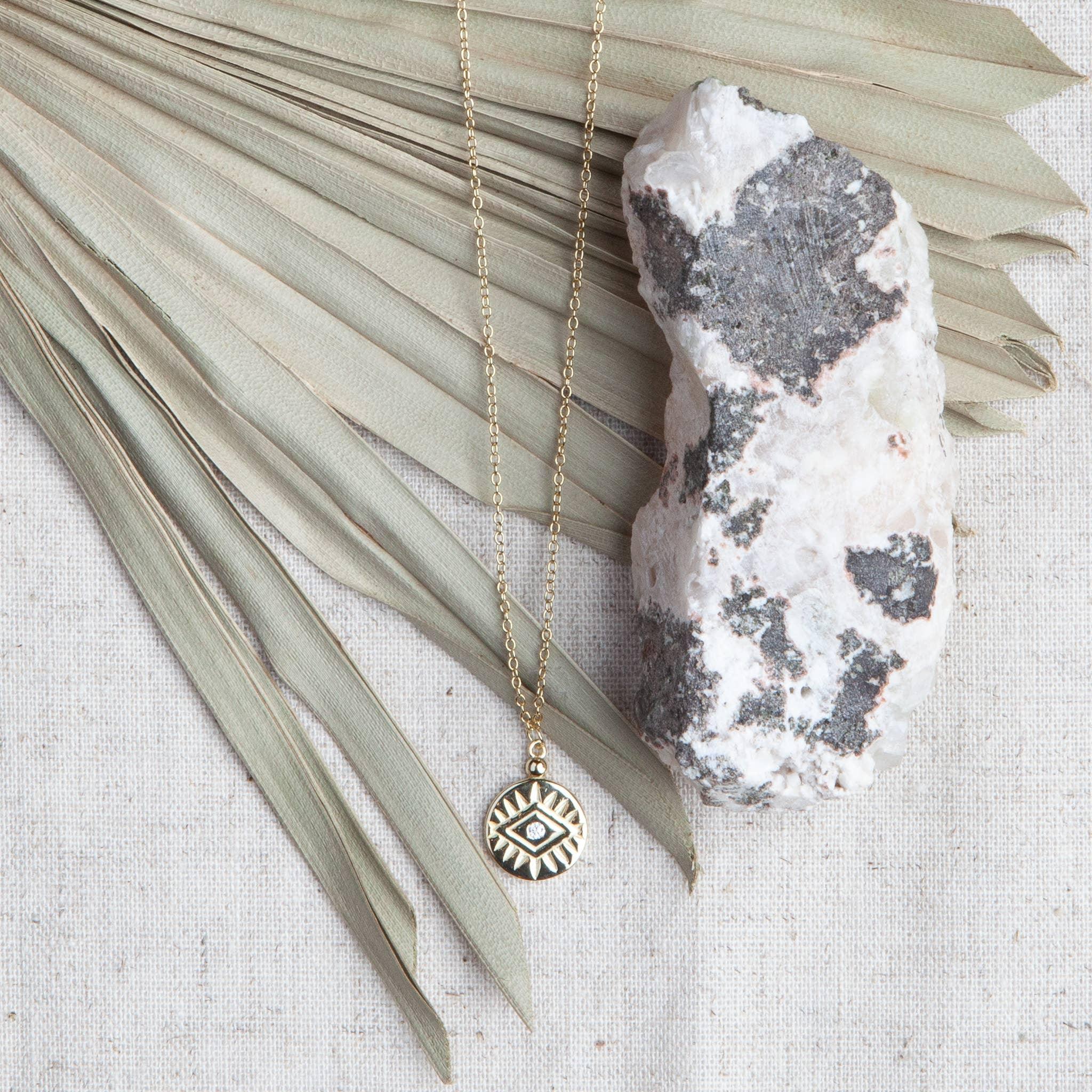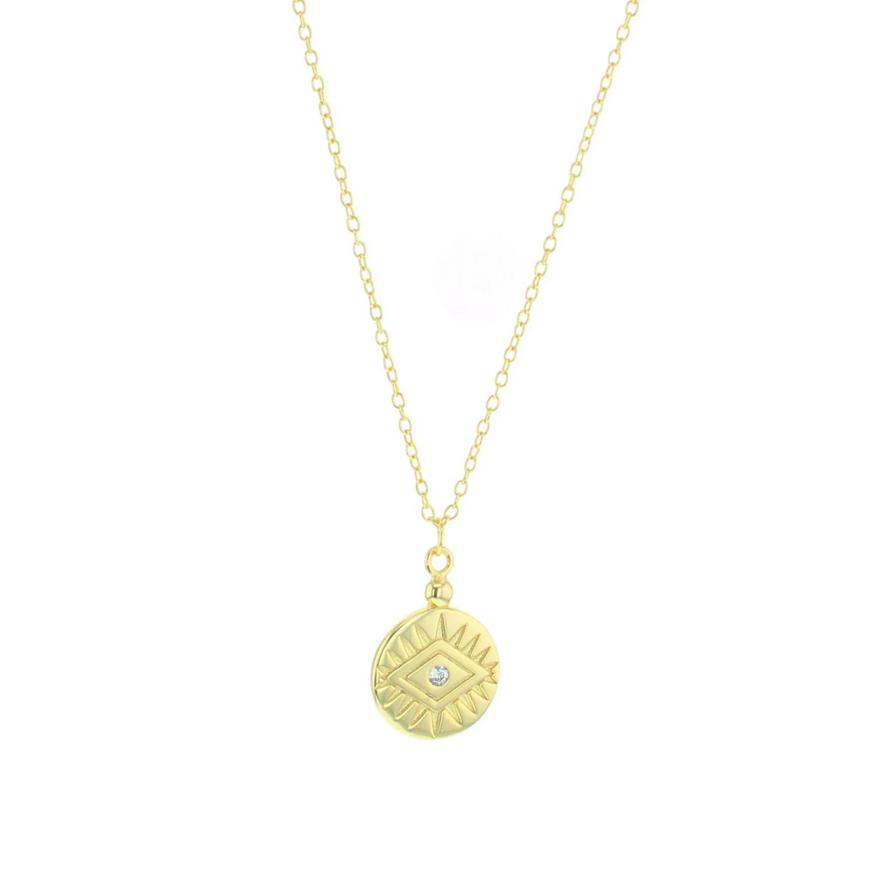 Our Zane necklace is the ultimate protection piece! It's evil eye design guards against misfortune to those who wear it. • 1/2"" pendant • 16""-18"" adjustable length chain • shiny finish • available in sterling silver and gold vermeil