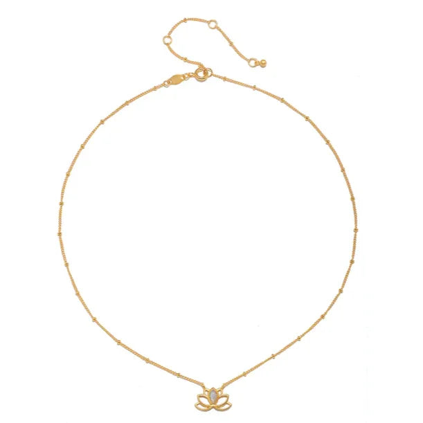 Let us honor truth in every moment and celebrate the strength it brings. This 18kt gold-plated necklace features an open-work lotus, a timeless emblem of new beginnings. A luminous moonstone—known for its connection to nourishment, protection, and the divine feminine—adds a layer of depth and inspiration to this meaningful piece.