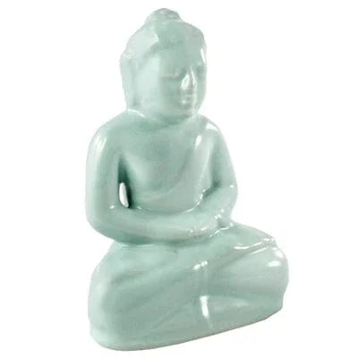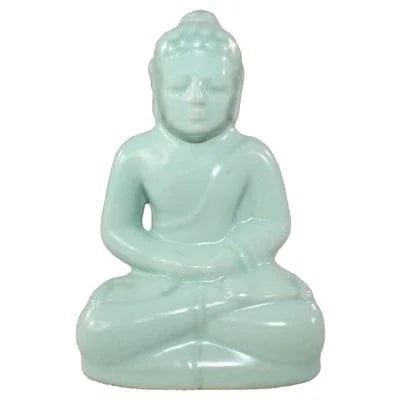 The little ceramic Buddha with vintage pale blue glazing is a lovely addition to your meditation space or altar. The hand position of this statue is commonly used for meditation and concentration.
