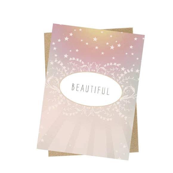 Illustrated with delicate leaves and pastel gradients, this Beautiful Stars mini greeting card is perfect for a less formal, personal message and smaller gifts. These sweet petite cards feature original artwork through an array of designs to send your heartfelt thank you to friends and family. They are postage friendly, mail safe and perfect for many occasions.