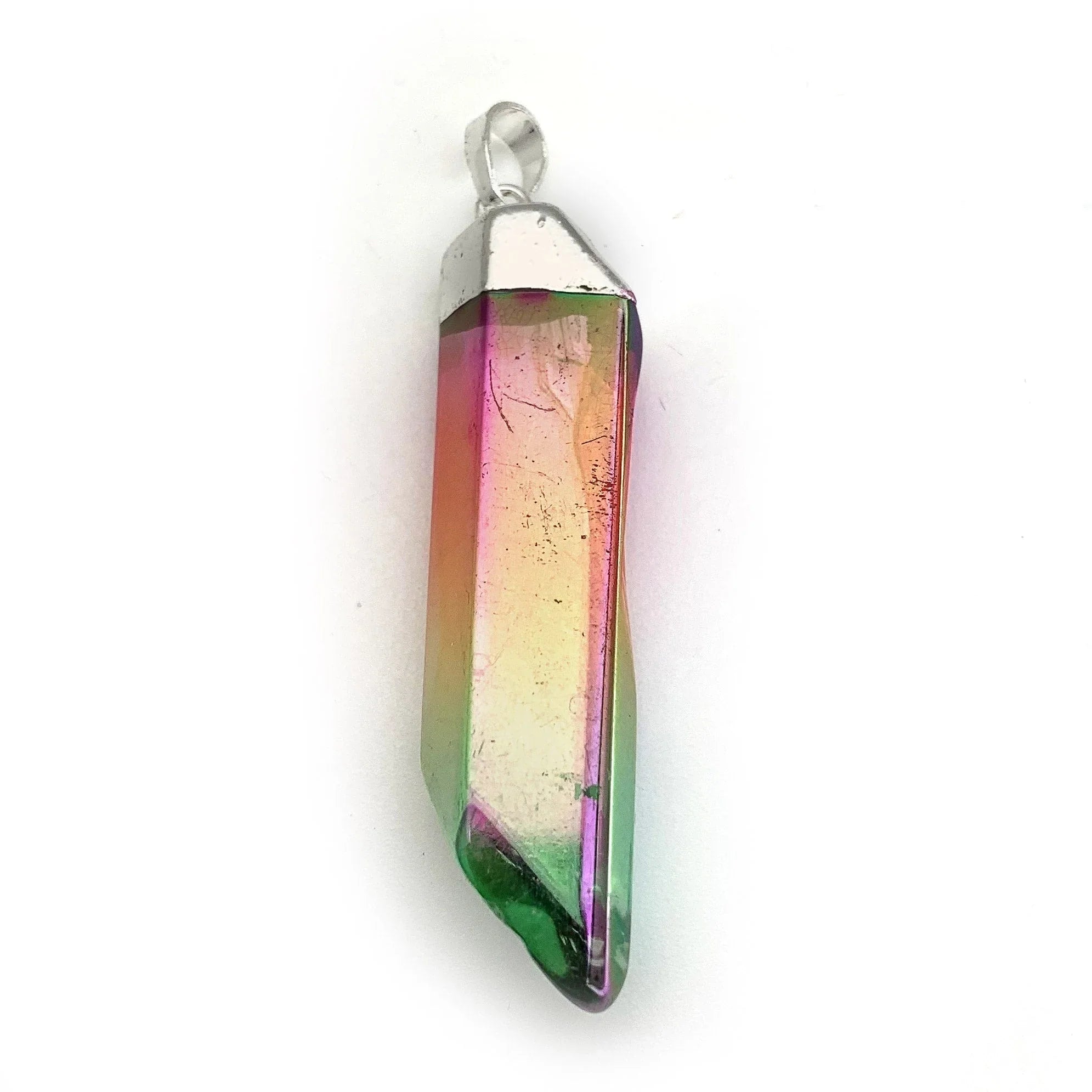 A beautiful rainbow aura quartz point pendant for a magical look.