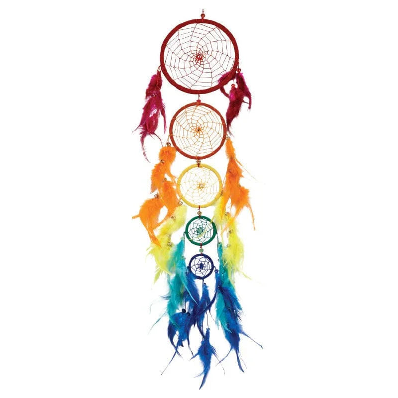 Enhance your space with color therapy by hanging this unique, multi-hoop dreamcatcher wall hanging.