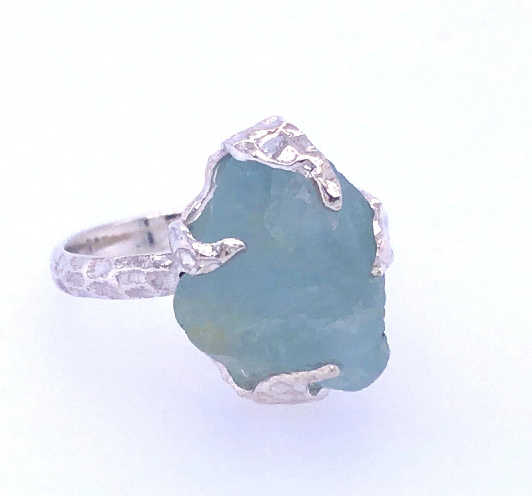 Rough Natural Aquamarine Gemstone Ring in Sterling Silver Size 9