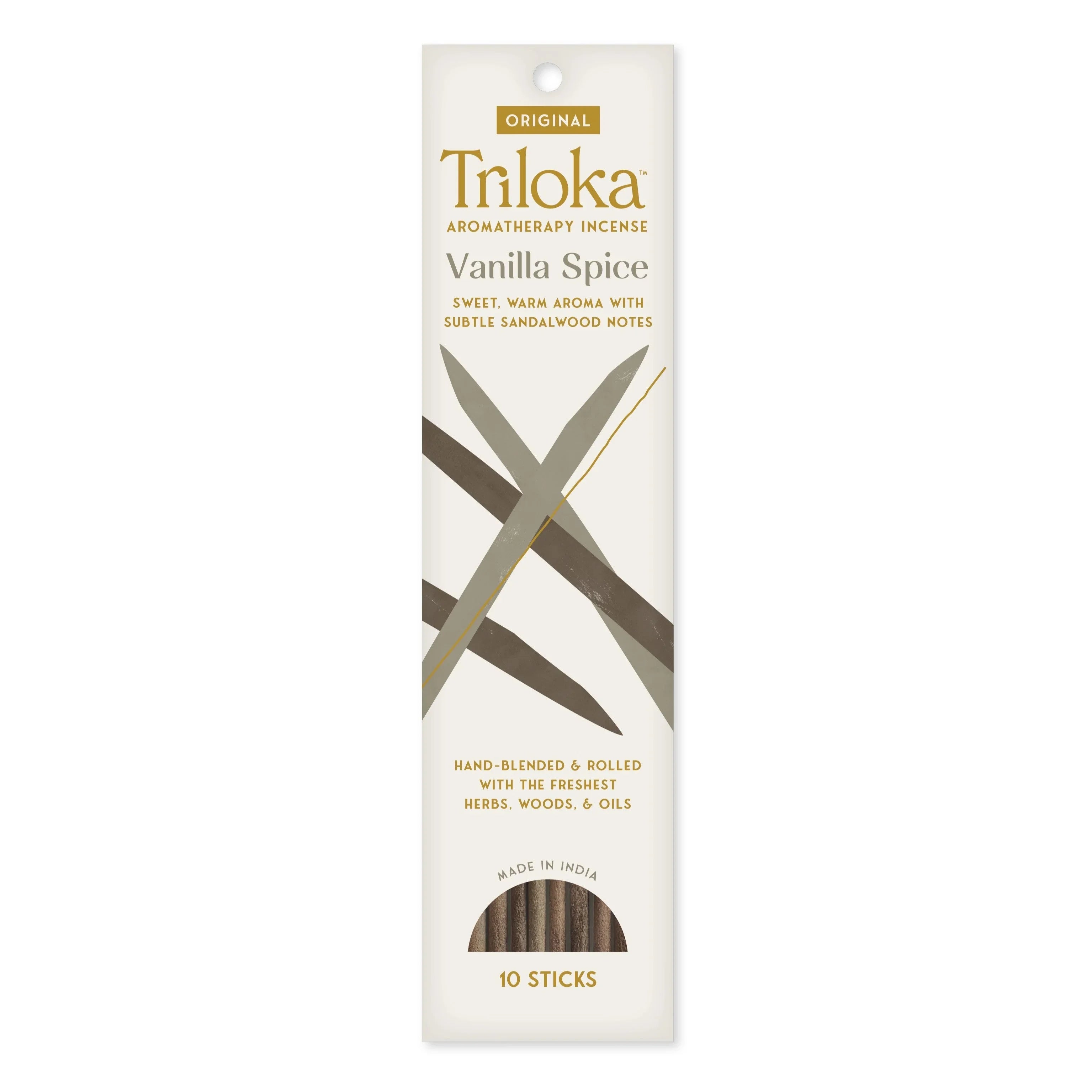 Triloka incense is hand-made according to the ancient masala method, a tradition that has been passed down through incense-crafting families in India for generations. This tried-and-true process blends sandalwood, herbs, gums, woods, resins, and oils to form a paste (masala) which is then hand-rolled onto fine bamboo sticks to dry in the sun. This method creates incense with a long-lasting fragrance that leaves a subtle aroma even after the incense has gone out.