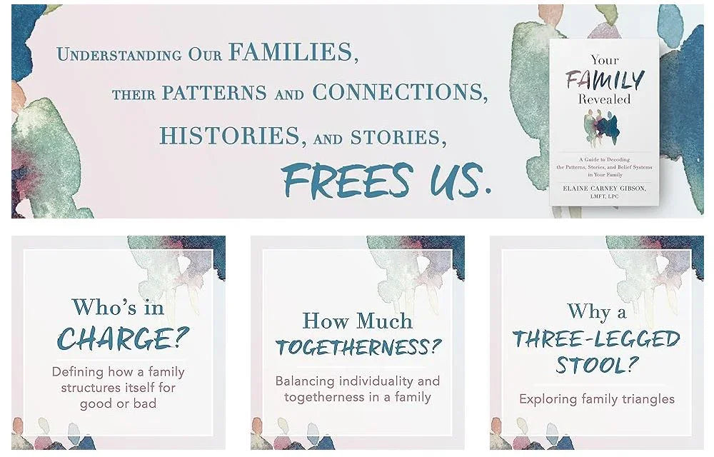 Your Family Revealed is an invitation to a journey of self-discovery. Drawing on 50 years of experience, psychotherapist Elaine Carney Gibson shares an accessible guide for better understanding yourself and your family so that you can find healing―for yourself and your loved ones. Here she provides real-world examples, insightful exercises, and reflection questions to help you navigate your own family’s dynamics, including: